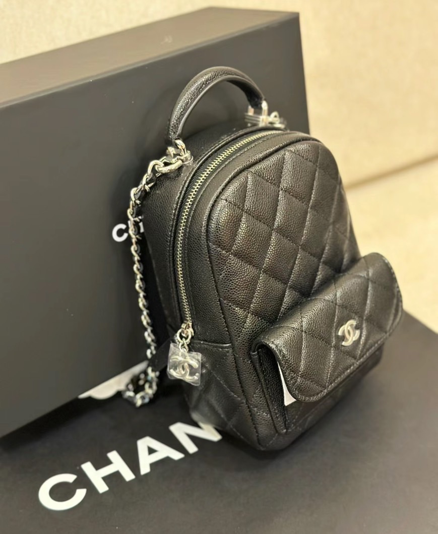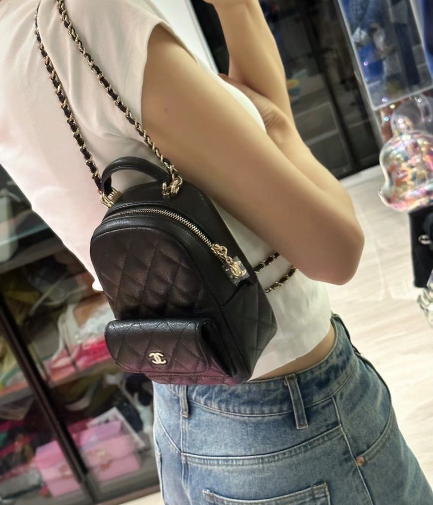 Chanel 24c mini 小書包黑色/淡金釦雙肩 斜肩 手拿肩帶可按照喜歡的方式扣尺寸:18*13*9cm