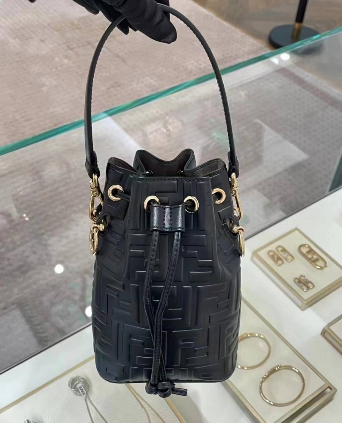 Fendi mon tresor 老花水桶包-買不後悔系列經典F logo 黑色怎麼搭都好看可斜背手拎手機短夾可放