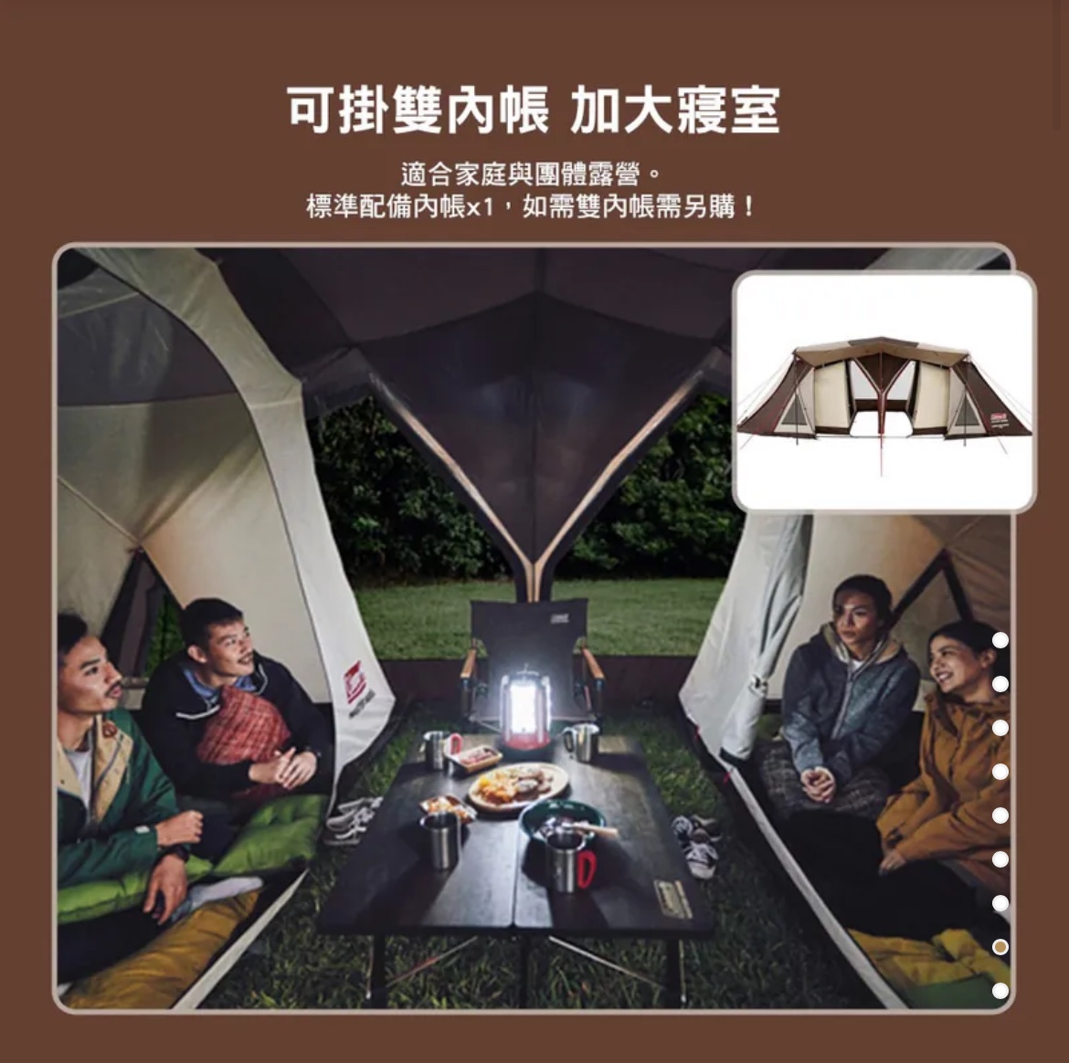 .可掛雙內帳 加大寢室,適合家庭與團體露營。