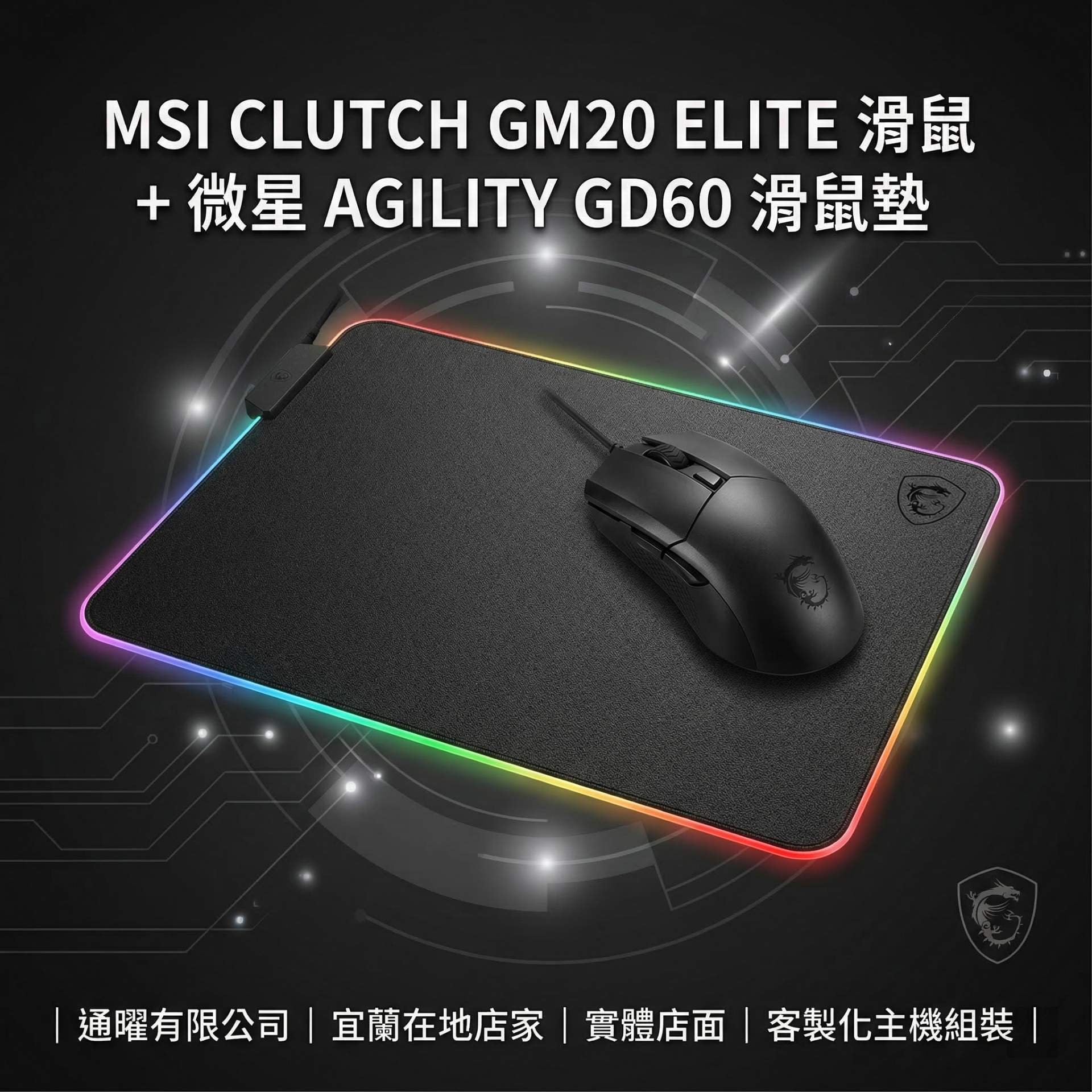 還在煩惱手感不對、滑鼠定位飄移嗎?微星 MSI 誠意推出「精準打擊 1+1 組合」,一次帶走精準控位的 GM20 ELITE 電競滑鼠 與 絲滑炫彩的 GD60 電競滑鼠墊!完美匹配的裝備,為你的電競桌面注入強大火力與炫目靈魂!🔥