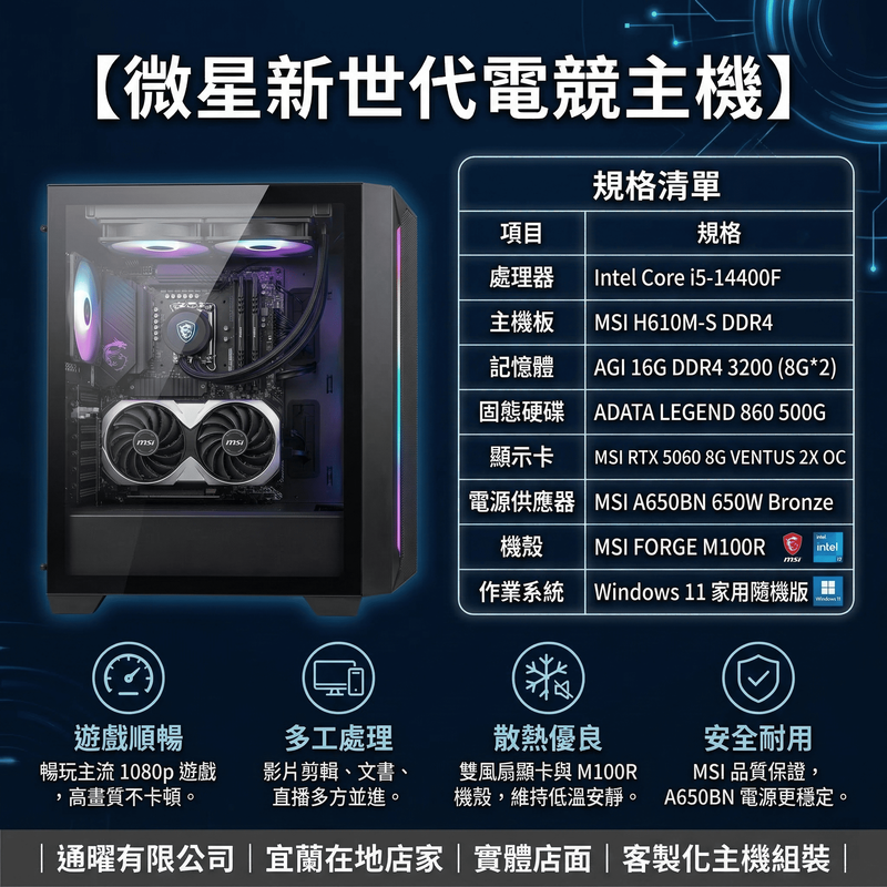 - 實體店面,在地服務:我們是 通曜有限公司(宜蘭在地店家),提供實體店面售後服務與客製化組裝諮詢。