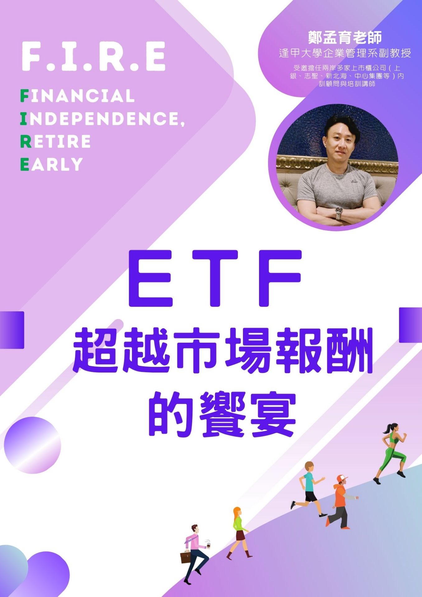 本系列之講座是由逢甲大學企管系鄭孟育老師以手把手的教學與經驗分享,提升您正確的投資觀念,藉由不斷買入好資產,打造高效率被動收入的投資心法,瞭解並精通掌控金錢的運作,使您成為金錢的主人,不再受金錢控制,更讓您早日實現財務自由的夢想。