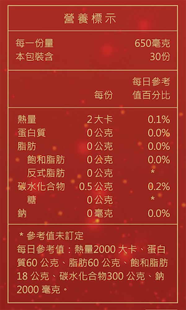 注意事項:懷孕期、哺乳期,嬰幼兒、孩童或對成分過敏及不適應者不建議食用,慢性疾病及特殊疾病患者,請經由醫師同意後食用。