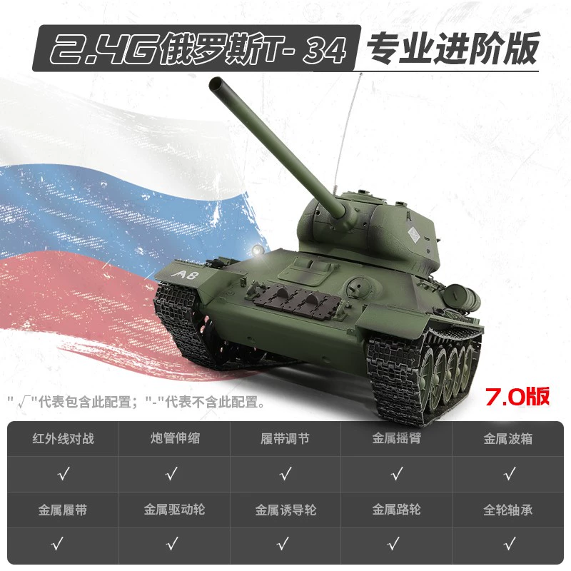 [酷飛] 恆龍遙控坦克金屬成人電動對戰四驅越野遙控車模型男孩玩具蘇T34專業進階版