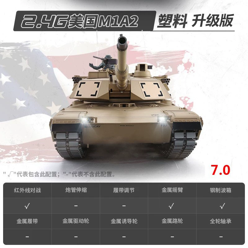 [酷飛] 恆龍遙控坦克金屬M1A2超大成人充電對戰軍事模型男孩玩具越野戰車 美式M1A2升級版-沙漠色