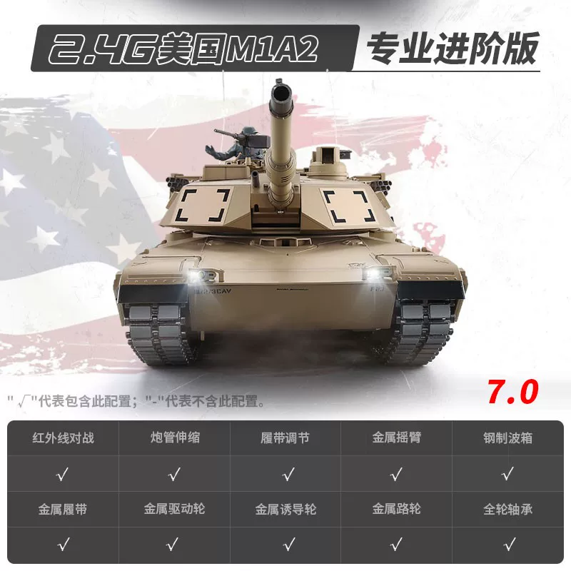 [酷飛] 恆龍遙控坦克金屬M1A2超大成人充電對戰軍事模型男孩玩具越野戰車 美式M1A2專業進階版-沙漠色