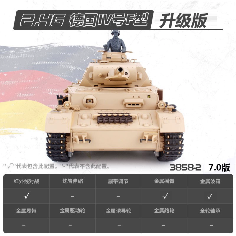 [酷飛] 恆龍金屬遙控坦克可射擊合金成人電動充電軍事模型四號F型3858升級版
