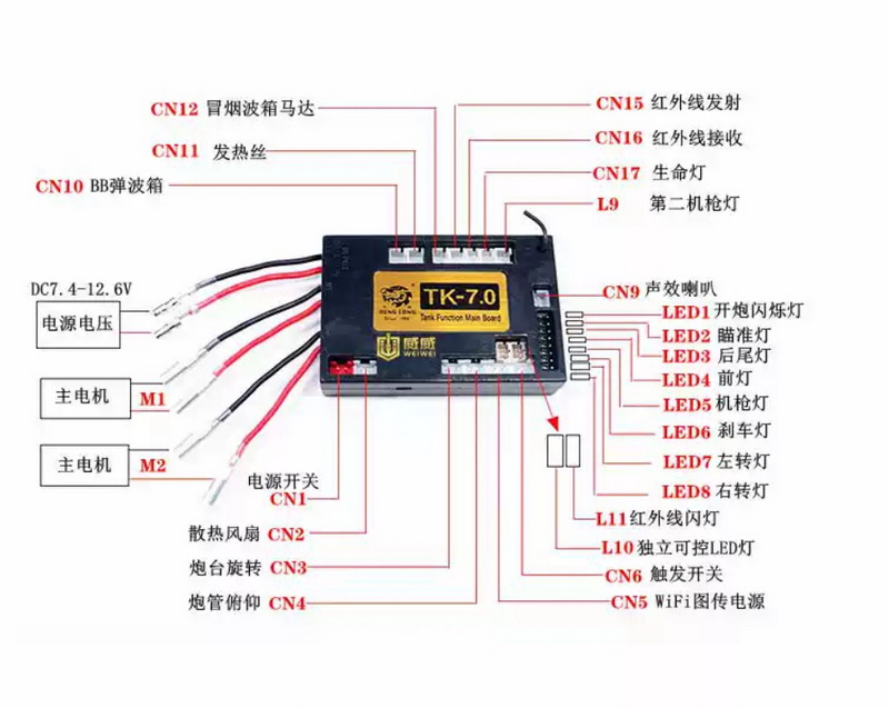 4、7代主板可以智能識別2S和3S電池。當檢測到低電壓後,主板會令坦克熄火,再次啟動坦克,主板會再次令坦克熄火。6代主板的低電保護只應對2S供電。