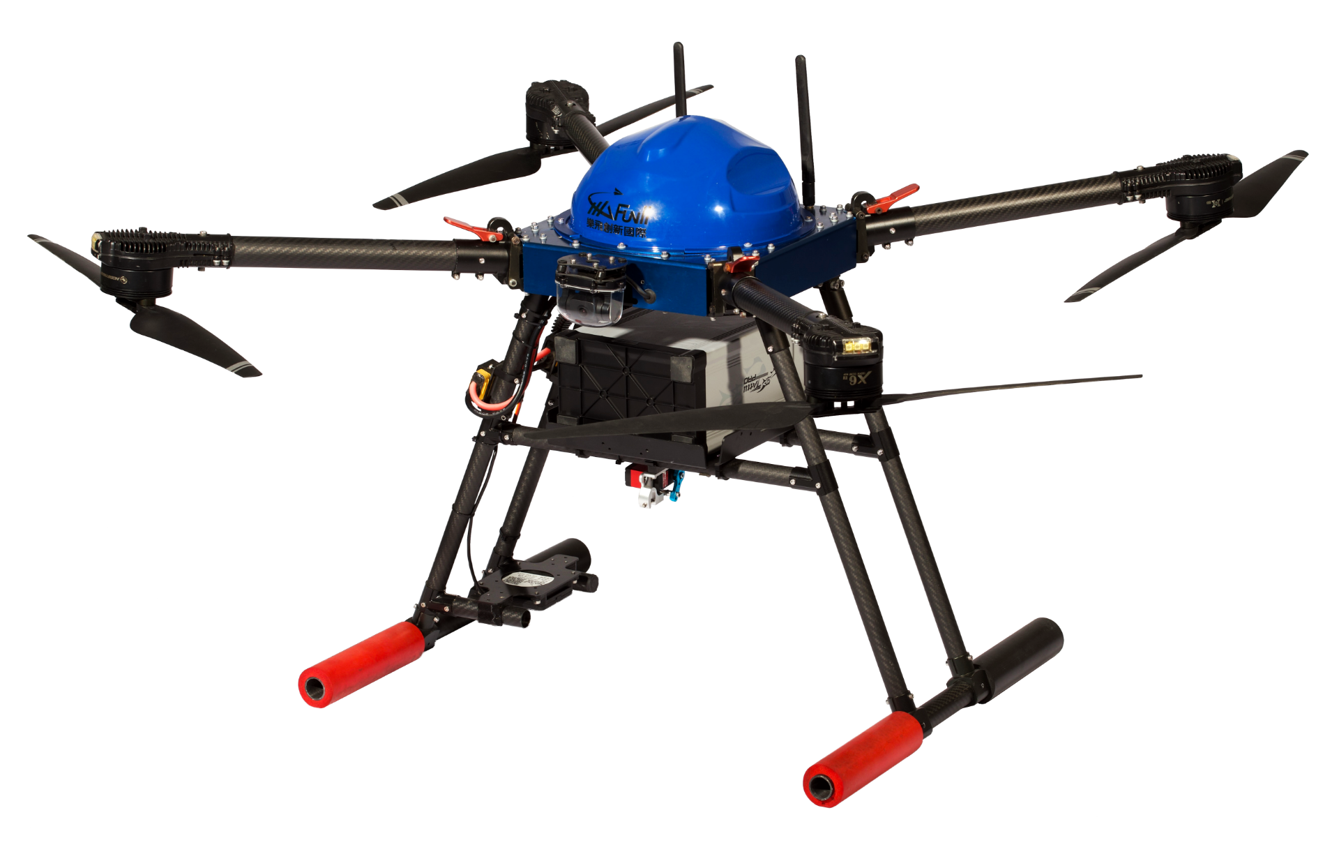 T4-110搭載MK15遙控器,配備高精準氣壓計及激光雷達,能有效增強對地高度更精準定位,風大到七級風一樣會自動平衡飛行,加上有低電壓保護功能,能夠在斷電或失去無線聯繫,該無人機將自動返回到其起飛位置,提供更可靠的飛行保障,最大起飛重量高達16公斤,空載飛行時間約17 - 30分鐘