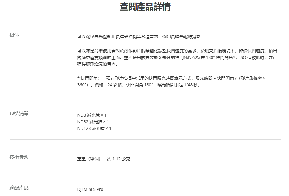 [酷飛] DJI 大疆MINI 5 PRO ND鏡套裝(8/32/128)