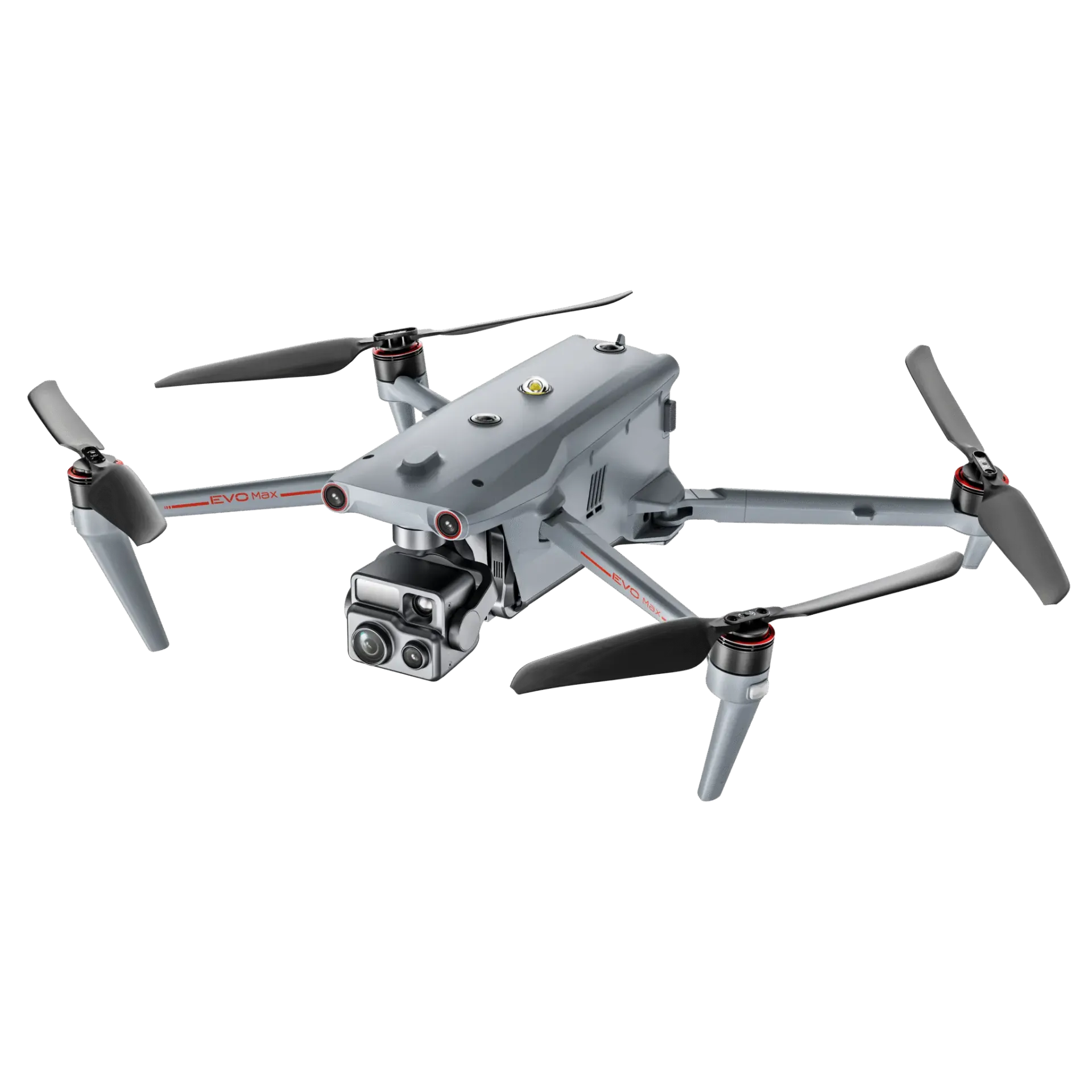 EVO Max 4T V2整機重量 1665克(含ABX41-D智能電池、融光4T V2雲台、螺旋槳) EVO Max 4N V2整機重量 1700克(含ABX41-D智能電池、融光4N V2雲台、螺旋槳) EVO Max 係列 V2多旋翼無人機 最大起飛重量 1999克 1890克(歐盟C2) 機身尺寸 563×657×147毫米(機臂展開,含1158螺旋槳) 258×170×147毫米(機臂折疊,含1158螺旋槳) 軸距 對角線:467毫米 螺旋槳尺寸 11英寸,1158 螺旋槳最大轉速 7500轉/分鍾 工作環境溫度 -20℃至+50℃(空載);-20℃至+40℃(滿載) 機載內存 內置128GB容量,剩餘可用空間約64GB* *剩餘可用空間會隨固件版本升級占用而變化。 存儲卡類型 支持插入Class 10、UHS-3或更高規格的microSD存儲卡, 最大支持容量可達1TB GNSS GPS / Galileo / BDS / GLONASS 電池熱替換 支持* *啟用該功能前,需提前在飛行應用內開啟快速換電。 夜航燈 集成 飛行性能 最大上升速度 低速檔:2.5米/秒 舒適檔:3米/秒 標準檔:6米/秒 狂暴檔:8米/秒 最大下降速度 低速檔:2.5米/秒 舒適檔:3米/秒 標準檔:6米/秒 狂暴檔:6米/秒 最大水平飛行速度* 低速檔:2.5米/秒 舒適檔:10米/秒 標準檔:15米/秒(前後)、10米/秒(左右) 狂暴檔:23米/秒(前)、18米/秒(後)、20米/秒(左右) *海平麵附近,近無風環境下。 最大飛行海拔高度 4500米(配ABX41-D智能電池) 最大飛行高度* 中國大陸或歐盟法規:不得超過120米 美國法規:不得超過400英尺 *飛行應用內最大可設置800米限高,超法定高度需自行獲得官方機構授權。 最長飛行時間* 42分鍾 *近無風環境下以8米/秒速度水平飛行的測試數據,僅供參考。 最大續航裏程* 25千米 *近無風環境下以14米/秒速度水平飛行的測試數據,僅供參考。 最長懸停時間* 37分鍾 *近無風環境下懸停的測試數據,僅供參考。 最大抗風速度 起降階段:10.7 米/秒 水平飛行階段:12 米/秒 最大可傾斜角度 低速檔:10° 舒適檔:30° 標準檔:30° 狂暴檔:36° 最大旋轉角速度 俯仰軸:300°/秒 偏航軸:120°/秒 懸停精度 垂直: ±0.1米(視覺定位正常工作時) ±0.5米(GNSS正常工作時) 水平: ±0.3米(視覺定位正常工作時) ±0.5米(高精度定位係統正常工作時)