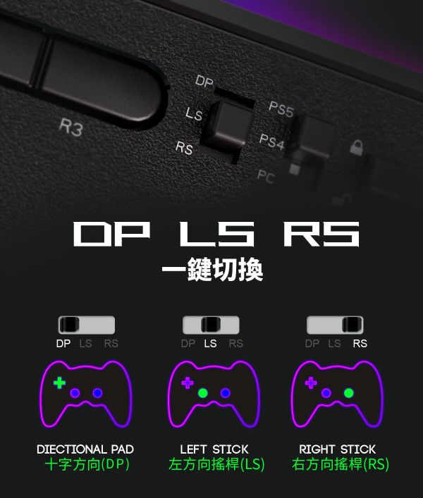 4. 一鍵切換平台使用&控制(DP十字/LS左搖桿/RS右搖桿)
