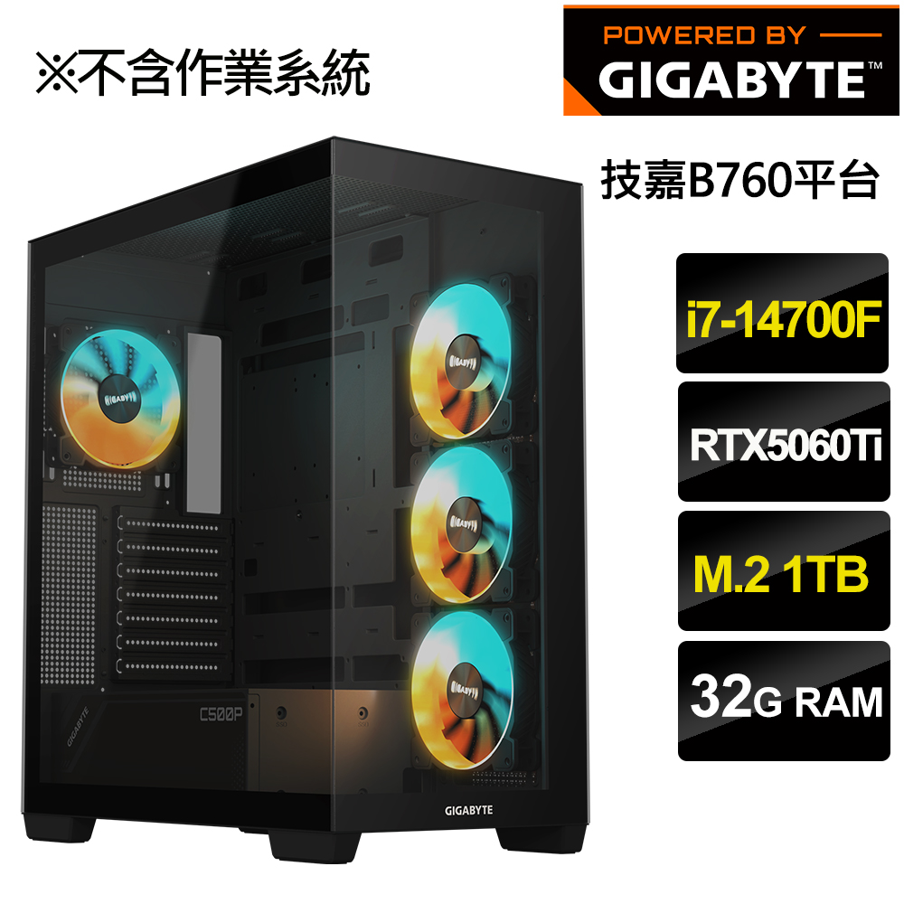【技嘉平台】i7二十核獨顯效能主機{弗萊堡}i7-14700F/B760/RTX5060Ti/32G/1TB SSD/650W金牌