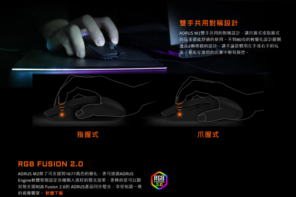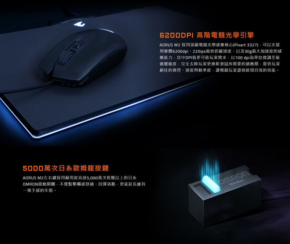 【技嘉 GIGABYTE】AORUS AORUS M2 電競滑鼠 有線滑鼠