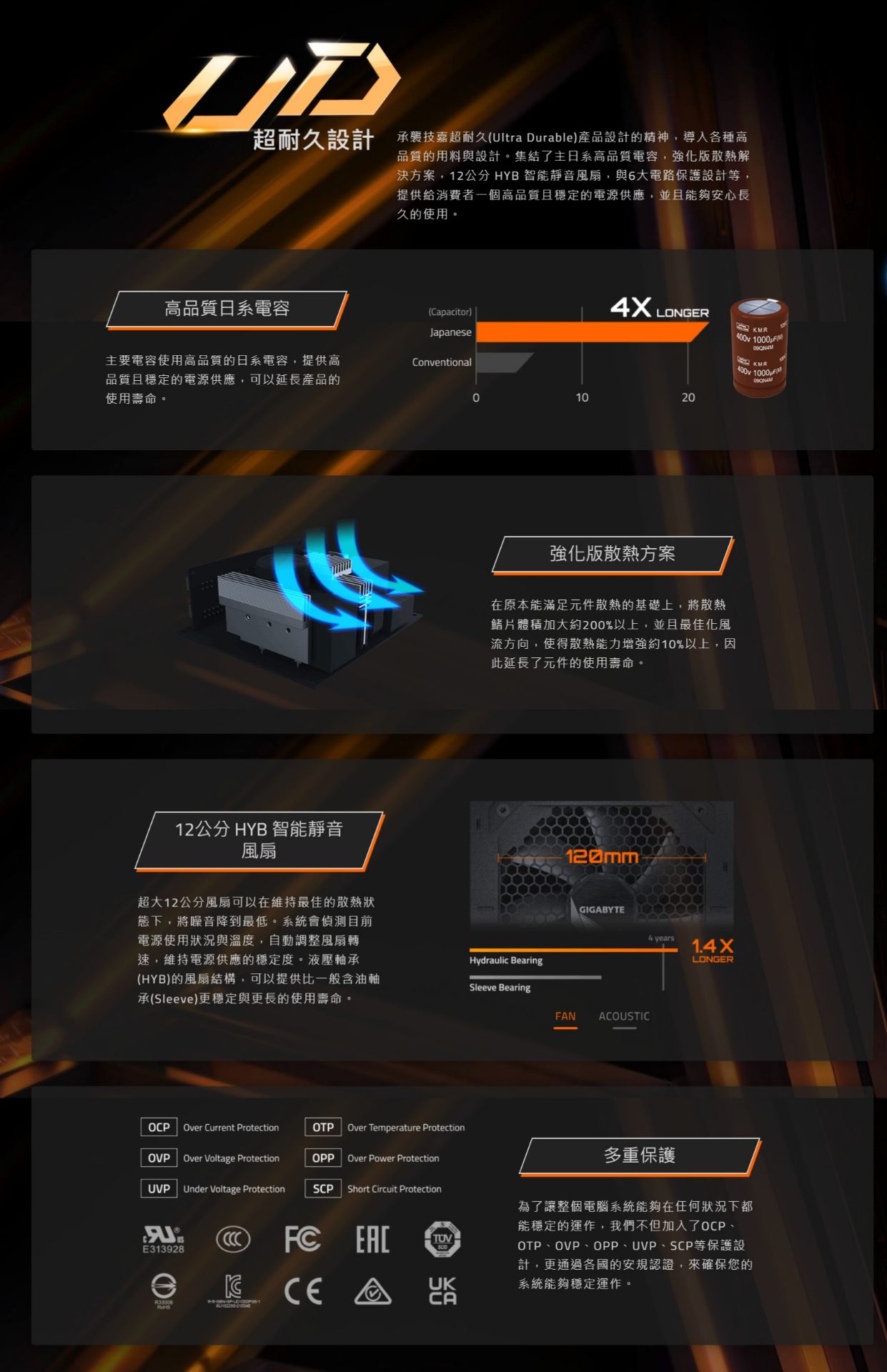 【技嘉 GIGABYTE】UD1000GM PG5 1000W 全模組化 金牌 電源供應器