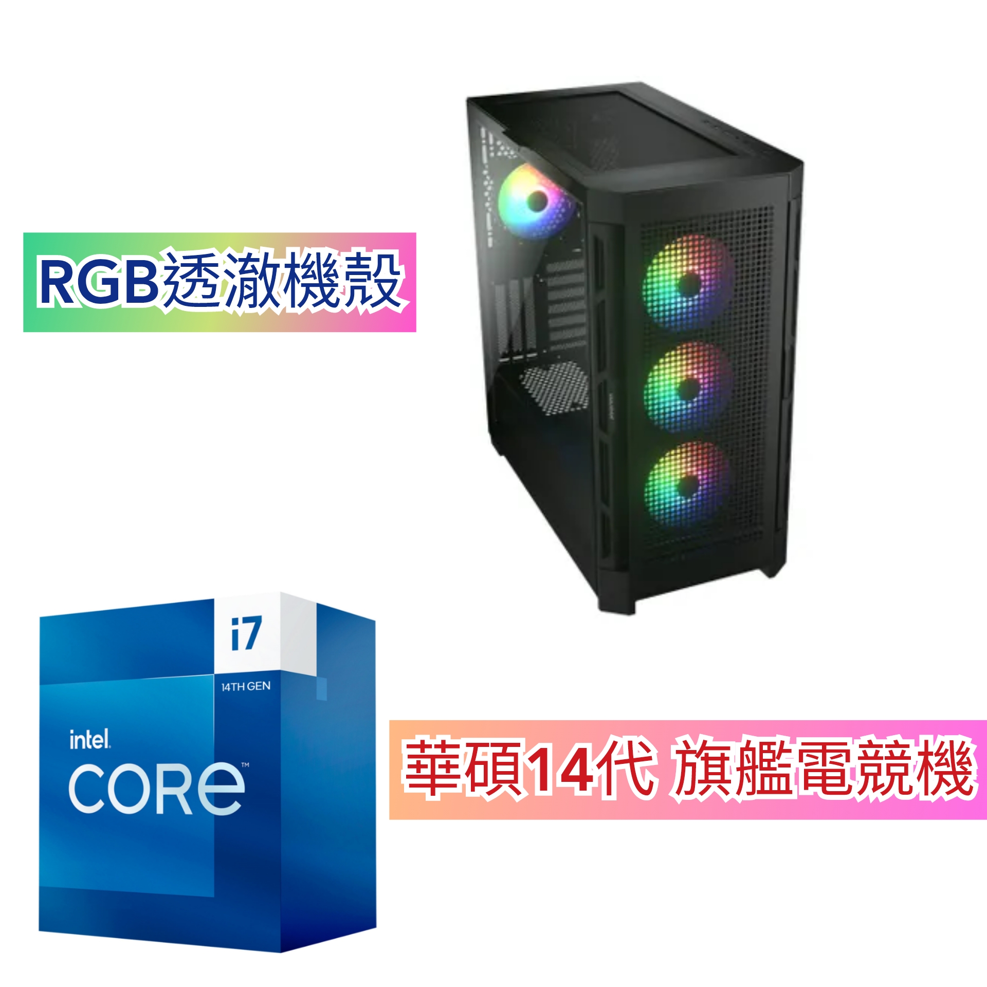 Intel I7 14代處理器 / 華碩Z790主機板 / 華碩頂級電競顯示卡 / 炫彩RGB機殼