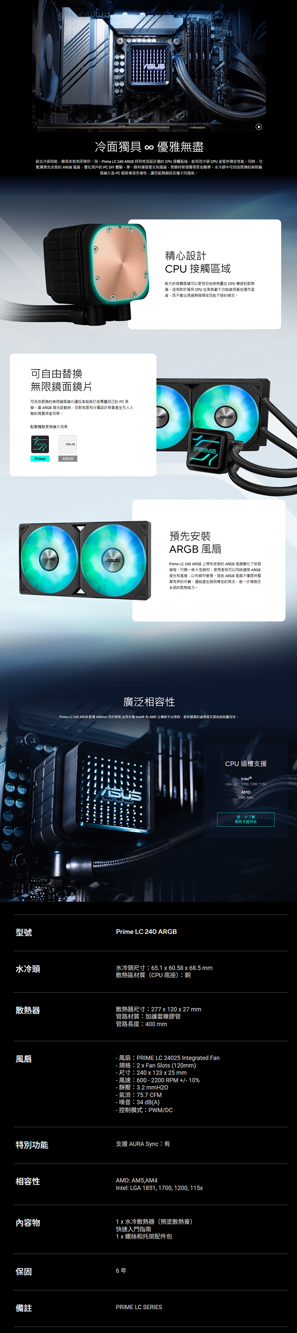 【ASUS 華碩】Prime LC 240 ARGB 一體式 CPU 水冷散熱器