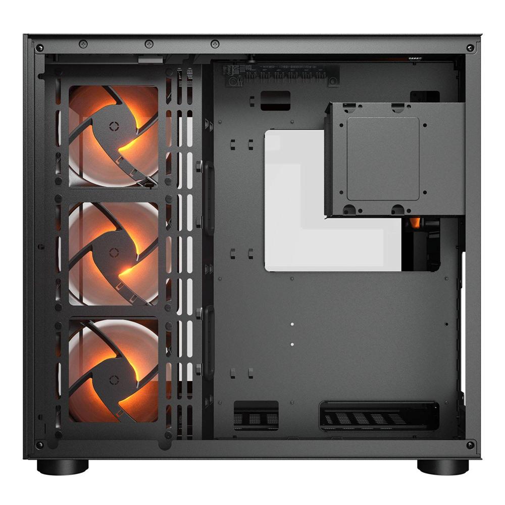 FV150 RGB 的雙艙設計將美學與功能性結合:緊鄰玻璃面板的艙室為裝機組件提供清晰視野,另一個艙室做為收納線材、硬碟與電源,巧妙地隱藏雜亂。底部可拆卸風扇支架讓你能事前固定風扇,裝機更無壓力。對顯示卡與和 ATX 主板的兼容性提供豐富裝機配置,擁有無限靈活性。