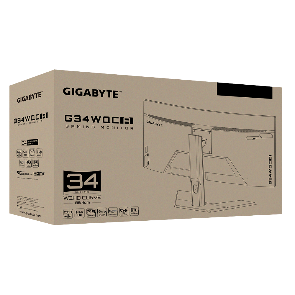 GIGABYTE 技嘉 G34WQC A 曲面電競螢幕(34吋/500R曲面/144Hz/FreeSync/HDR/VA)