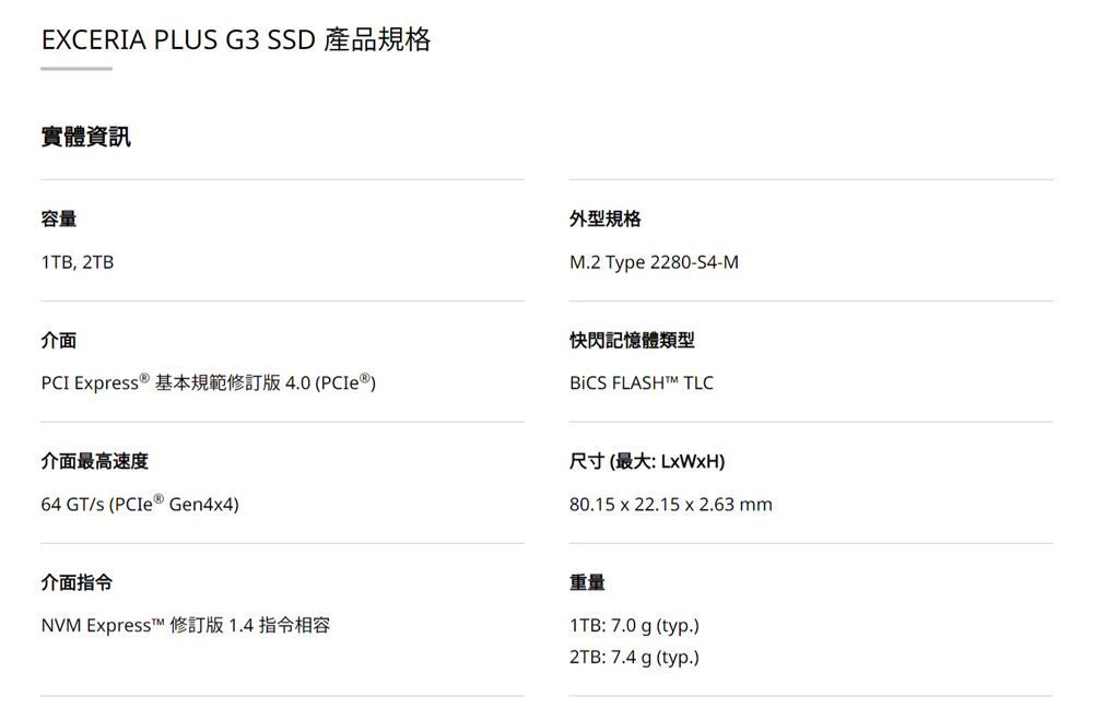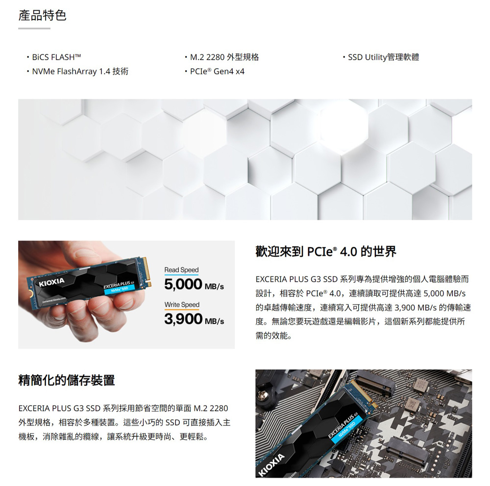 KIOXIA 鎧俠 Exceria Plus G3 SSD M.2 2280 PCIe NVMe 1TB Gen4x4 固態硬碟