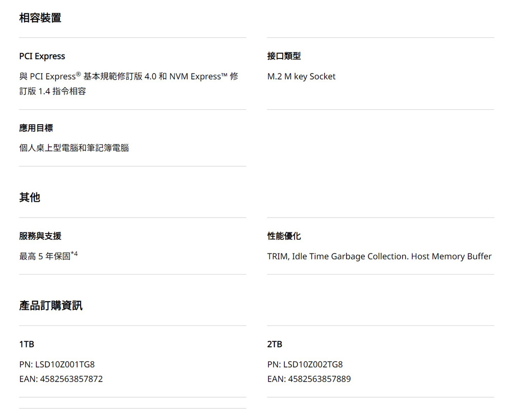 ※以上規格資料若有任何錯誤或原廠更動,以原廠所公佈資料為準。