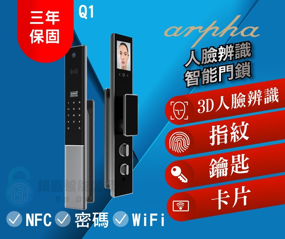 《商品介紹》 8種的開鎖方式 讓您的生活更加智能方便,讓銀髮族與小孩不用複雜的程序,便能解鎖開門回家。 人臉即辨識開鎖,速度快,黑暗中也能辨識 超廣角的鏡頭掃描,不用彎腰或墊腳就能辨識。 可遠距給予一次性密碼,方便讓臨時來訪的親友進入, 可使用多種功能,像是遠距查看貓眼顯示畫面,可即時看到門前情形,也有貓眼快拍功能,能夠拍下當前畫面 ; 可查看門鎖開關門紀錄、即時訊息通知,隨時了解家中情形。 鎖體的部分採用 德國製靜音鎖體,品質有很大的保證,並且在開關鎖時非常的靜音!!