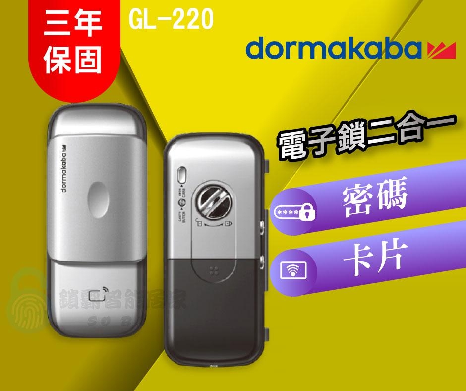 《商品介紹》 【dormakaba】作為歷史悠久的門鎖企業之一,傳承集團百年工藝品質,在科技創新的道路上不斷前進,各種豐富的鑰匙、芯片鑰匙和鑰匙加工機,已使用於世界各地,集團擁有著多項全球專利、通過多項國際認證,榮獲多項國際大獎,提供給您安心保障與最便利的享受。 dormakaba電子鎖,讓你輕鬆過生活~再也不用擔心家人出門忘記帶鑰匙,科技就是讓你無須煩惱! GL220是一款外掛型的智慧電子鎖,適用於無框玻璃門,此鎖無須開孔可直接安裝,提供更加方便,更加安全的玻璃門安防應用。 ●密碼(4-12位數.可設置4組) 一次性密碼(開門後立即失效) ●卡片(可登錄100組)