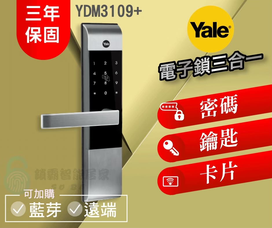 《商品介紹》 耶魯YDM-3109電子鎖是一款具有多種解鎖方式的電子鎖, 並具有特別的安全把手設計,按下安全按鈕同時下壓內部把手時,大門才能開啟,可避免外力入侵, 不但安全防盜,同時可防止孩童或大型寵物誤開,此功能可依個人便利決定。 全新升級! 最新電容按壓式指紋模組,快速辨識,輕鬆出入。 ●密碼4~10位(100組) 一次性密碼(4位數) ●卡片(可登錄40組) 支援悠遊卡功能 ●鑰匙 藍芽、遠端可加購