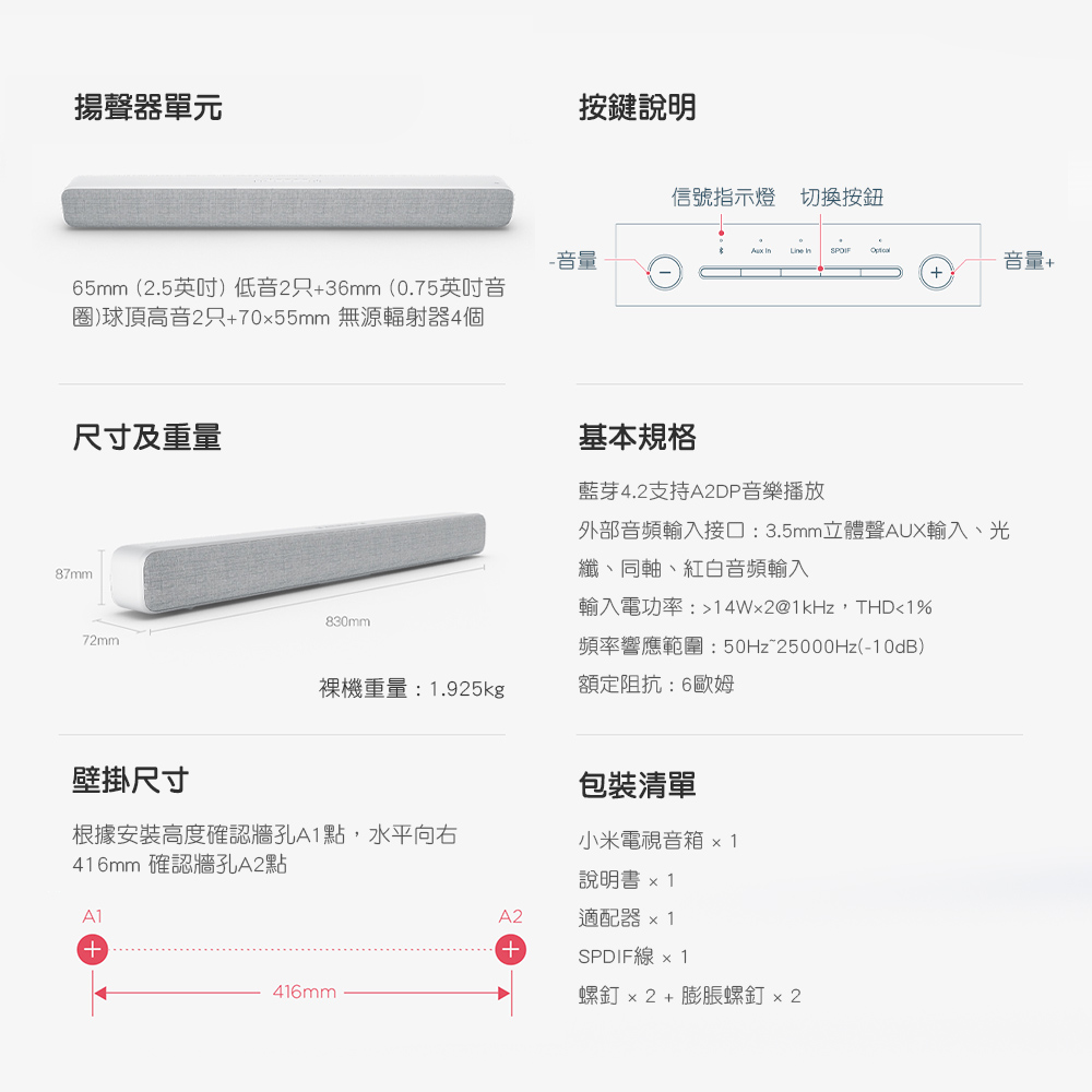 外部音頻輸入接口:3.5mm立體聲AUX輸入、光纖、同軸、紅白音頻輸入