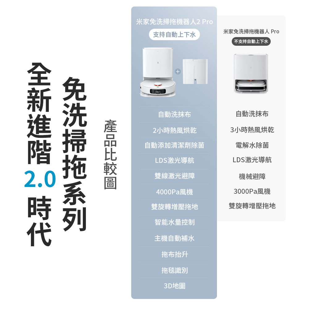 Q1:請問免洗掃拖2pro和免洗掃拖機器人差別在哪裡?