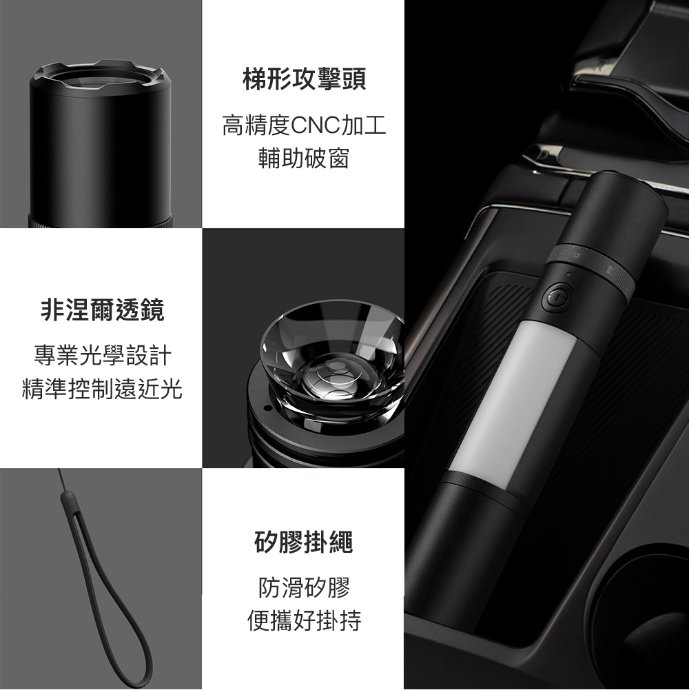 自帶破窗器 安全帶割刀 側燈 磁吸手電筒 車用手電筒