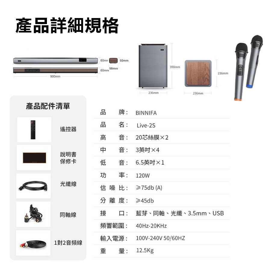 BINNIFA 家庭劇院無線重低音 Live 2S