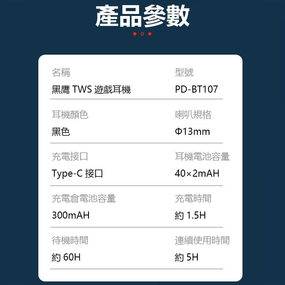 名稱:黑鷹TWS遊戲耳機