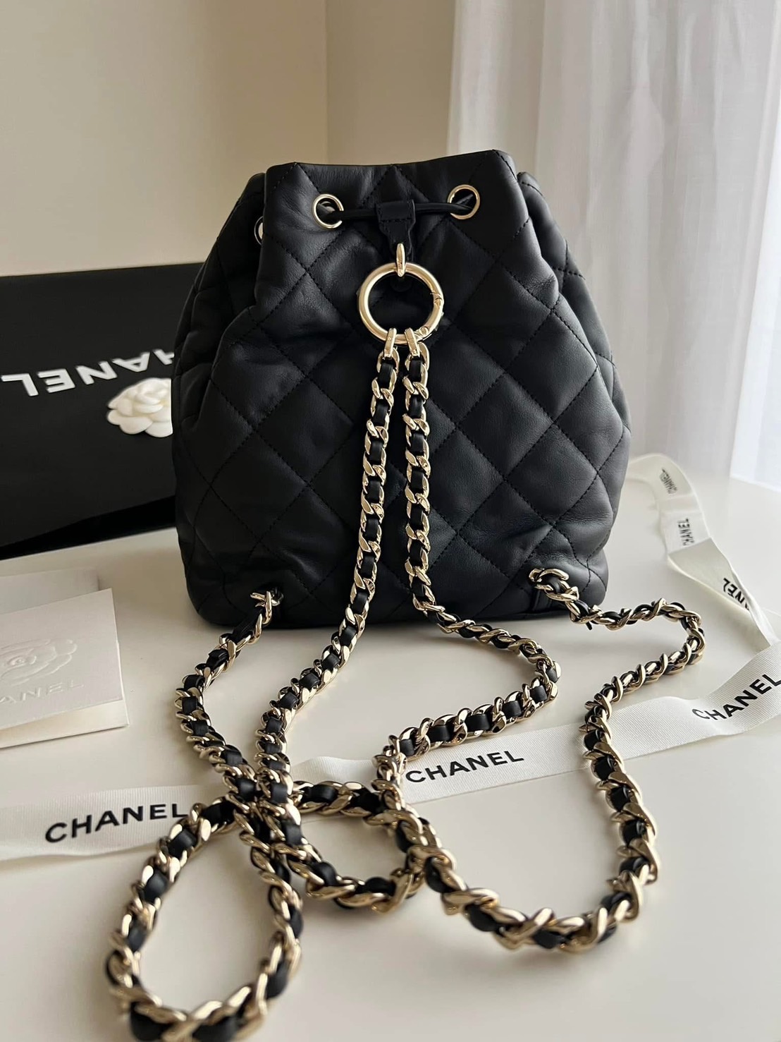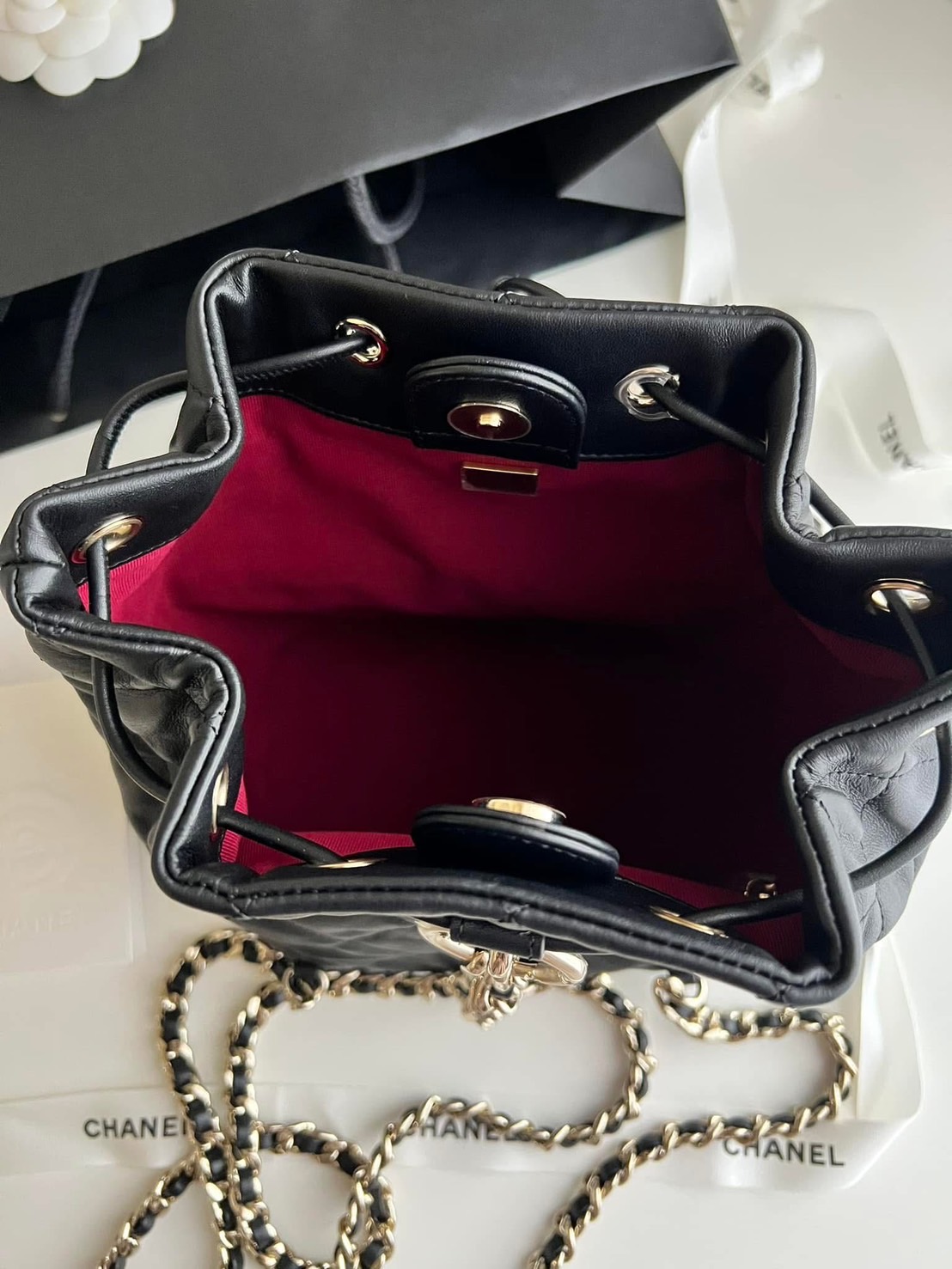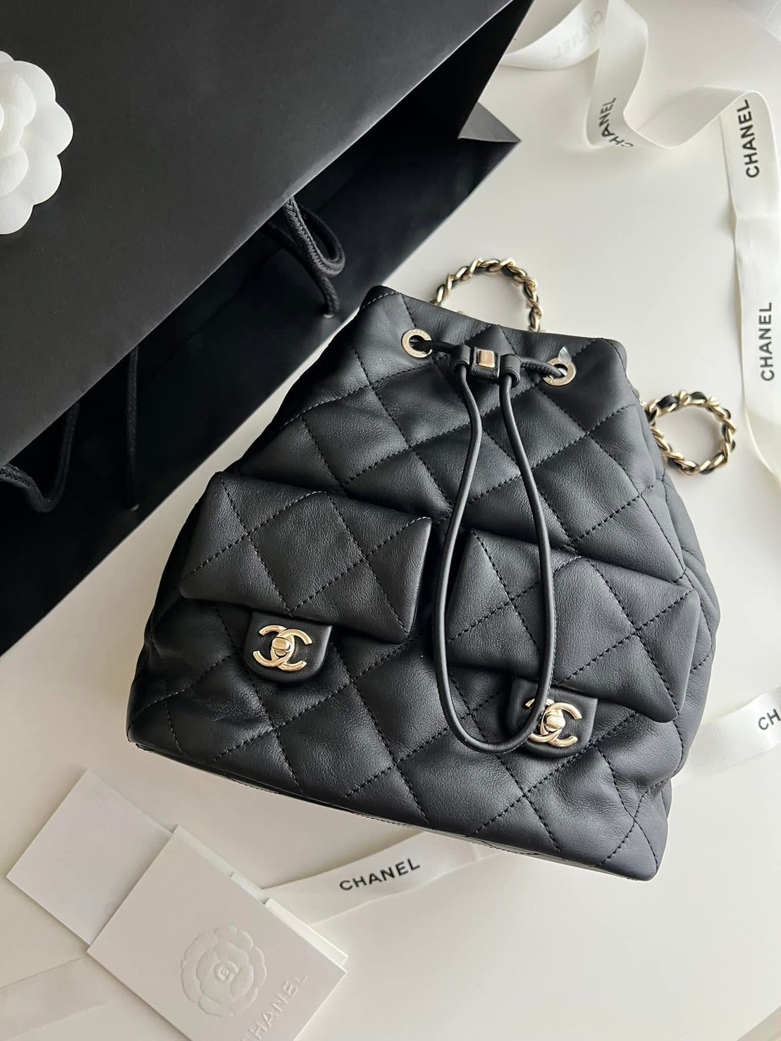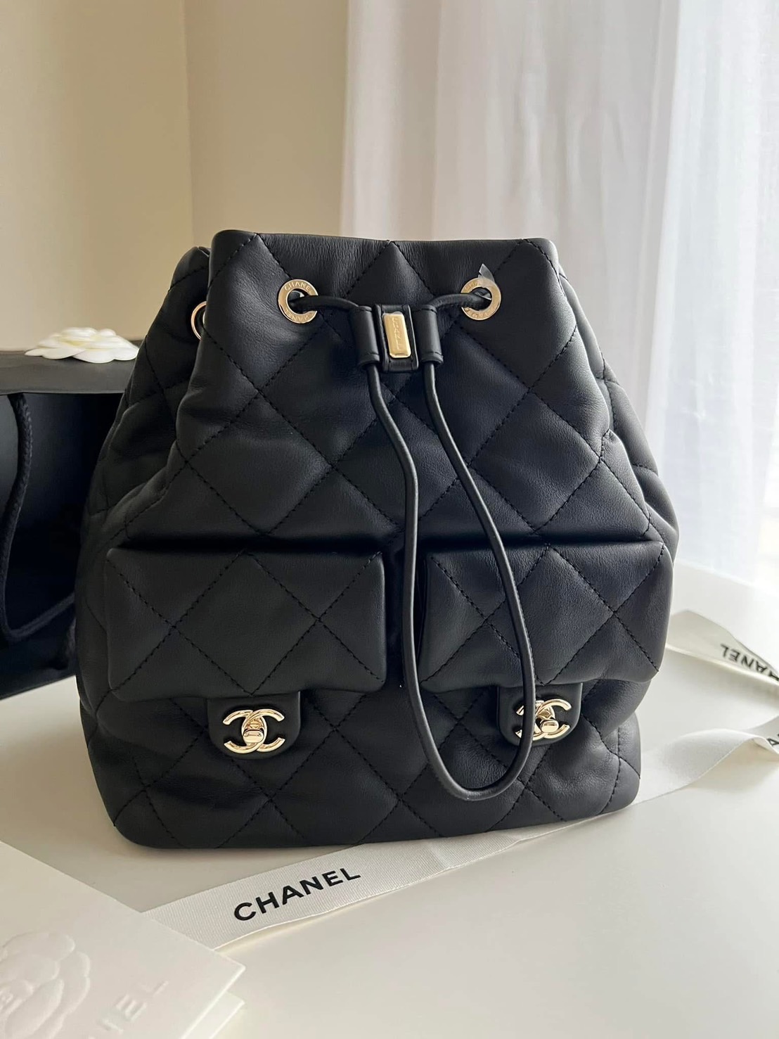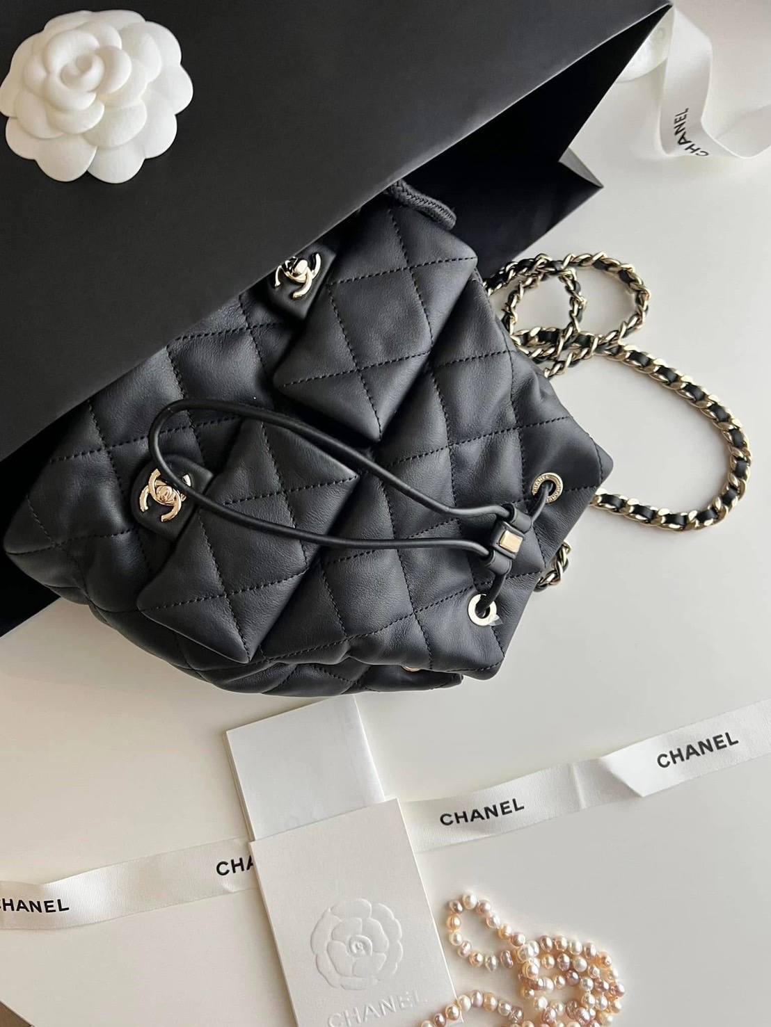 CHANEL 黑色雙口袋小背包