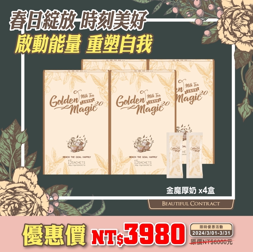 成分:特選即溶紅茶粉(伯爵紅茶)、全脂奶粉、MCT中鏈脂肪酸(中鏈脂肪酸甘油酯、辛烯基丁二酸鈉澱粉、脂肪酸甘油酯(植物性)、乳酸硬脂酸鈉、二氧化矽、麥芽糊精、碳酸鈣、酪蛋白鈉、維生素E (抗氧化劑)) 、小麥纖維、紅花籽油、瓜拿納萃取物、魔芋、蘋果纖維、甜菜根粉、蔓越莓萃取粉、洋車前子粉、Lepticore專利複合式植物萃取(關華豆、刺槐豆、阿拉伯膠、石榴、Beta-胡蘿蔔素、束絲藻)、(專利)仙人掌萃取物、番紅花萃取物、(專利)毛喉鞘蕊花萃取物、栗子皮萃取物、白腎豆萃取物、大豆卵磷脂(含磷脂醯膽鹼、糊精、二氧化矽)、藤黃果萃取物、非洲芒果種子萃取物、蔗糖素。