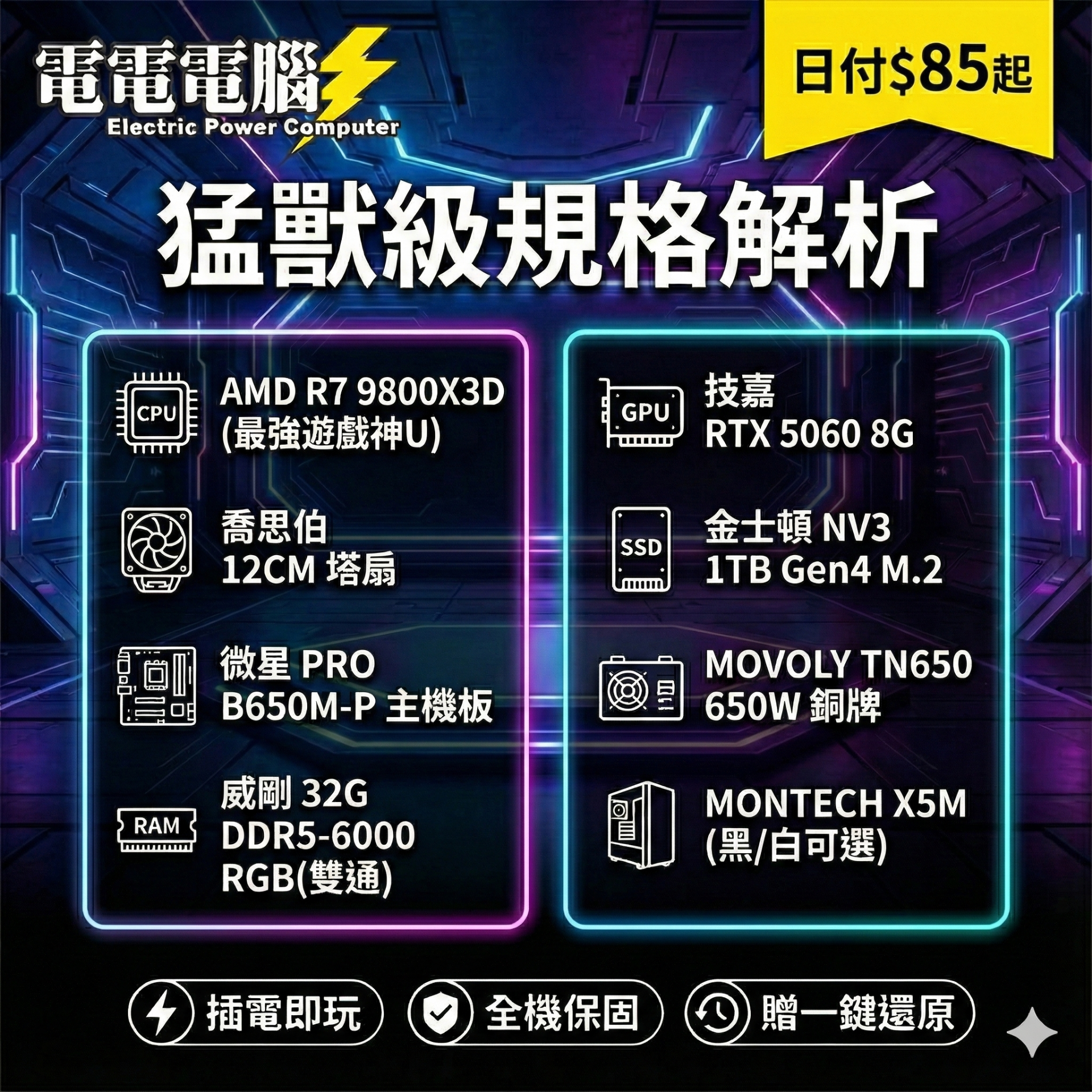 圖片 🚀地表最強遊戲神U R7 9800X3D + RTX5060 | 特戰英豪600幀 | 32G D5 | 無卡分期日付$85起 | 贈一鍵還原