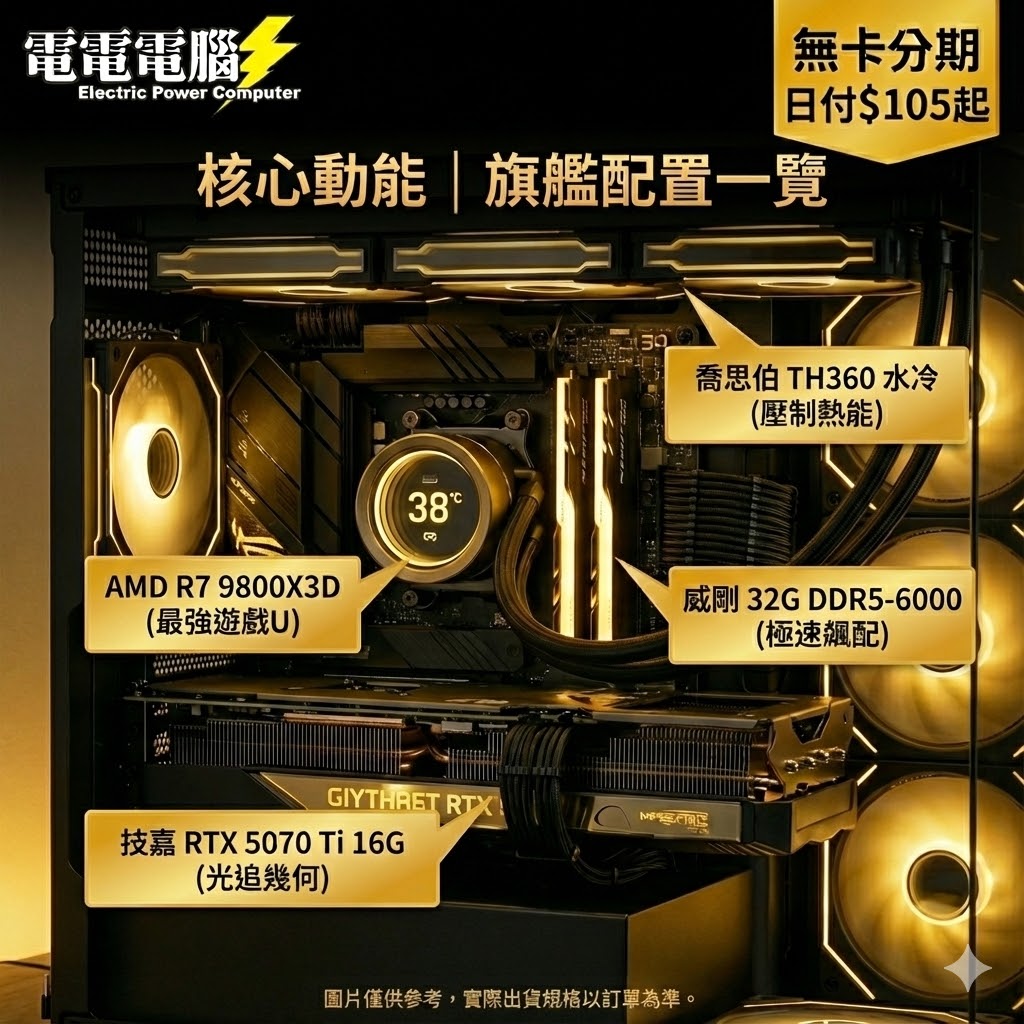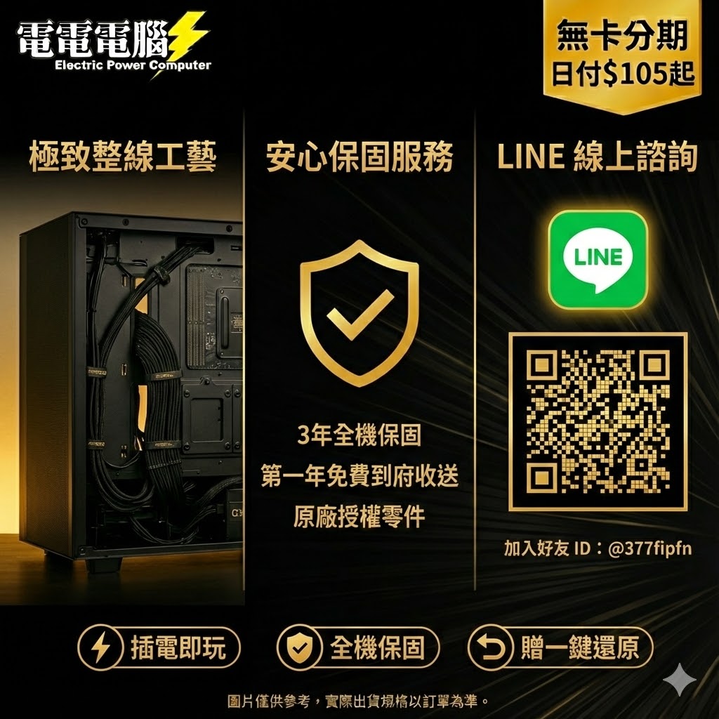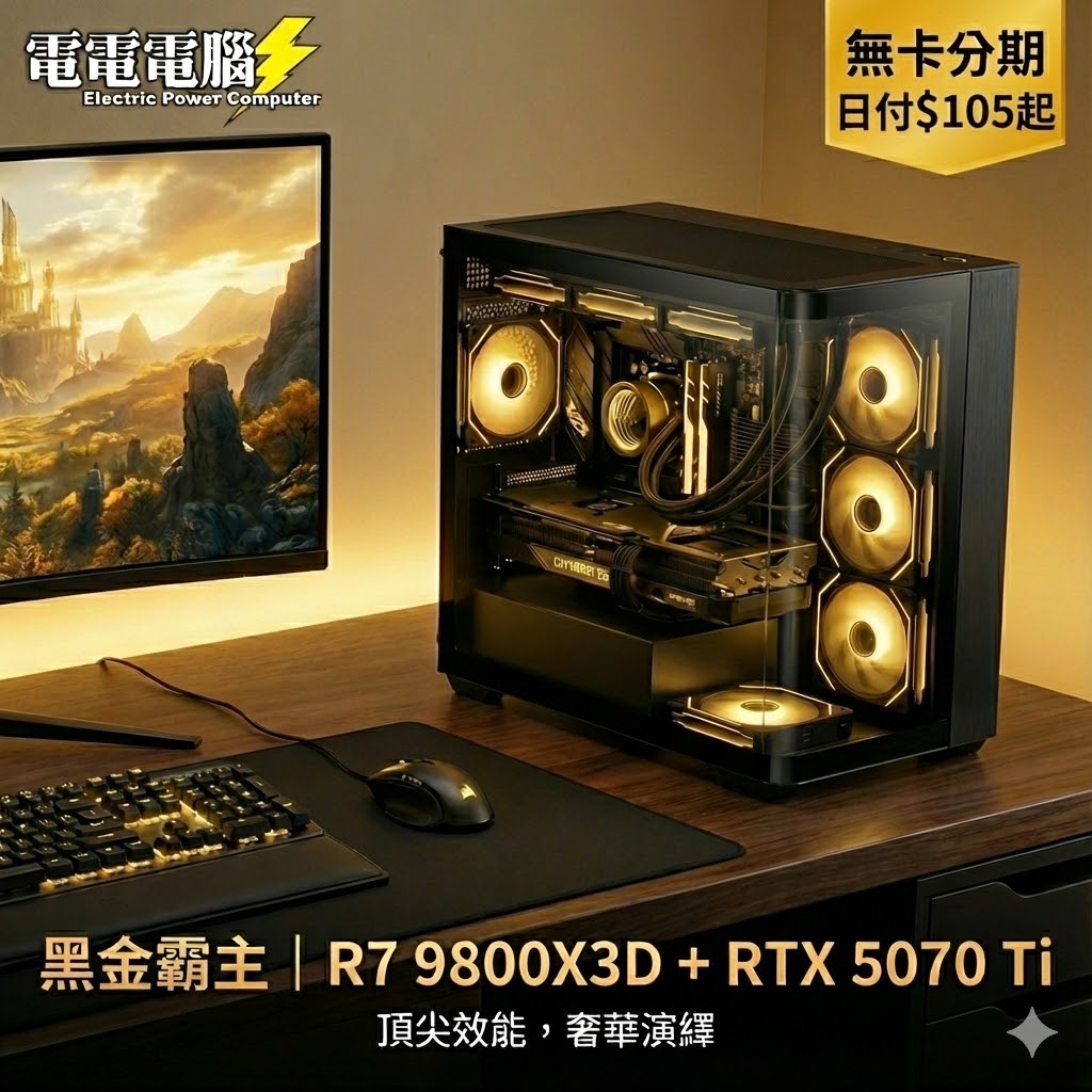 【 👑 獻給追求極致的玩家:效能與顏值的終極答案 】 你是否受夠了為了順暢度而犧牲遊戲畫質? 你是否夢想擁有一台既能制霸 3A 大作,又能成為桌上最耀眼擺設的主機? 「電電電腦」全新推出黑金特仕版,集結當前最強遊戲硬體與職人組裝工藝,一次滿足你對頂級電競體驗的所有想像。