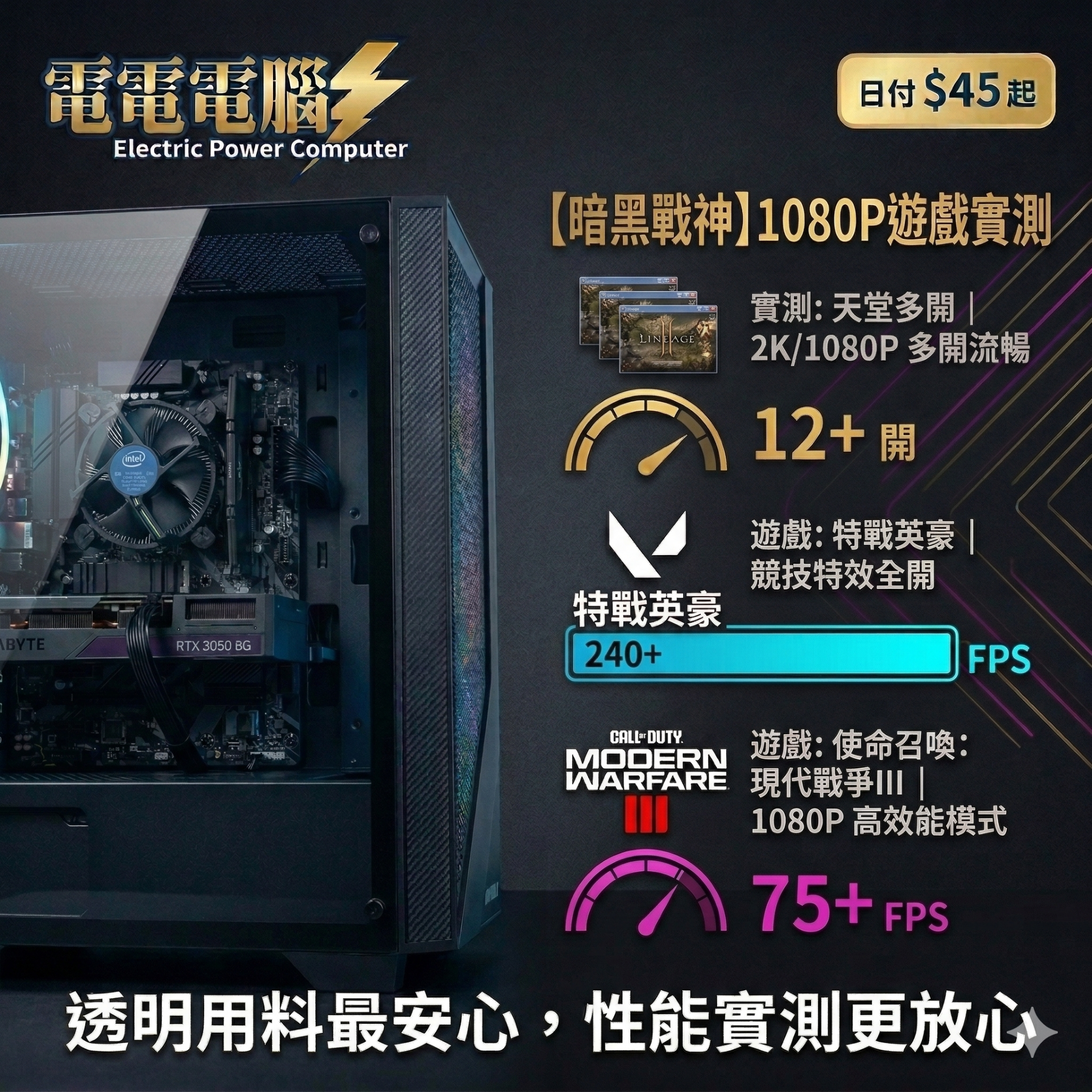 圖片 【暗黑戰神】電電電腦・3070 黑科技海景房 | i5-14400F + RTX 3050 | 贈一鍵還原+到府收送 | 日付$45起
