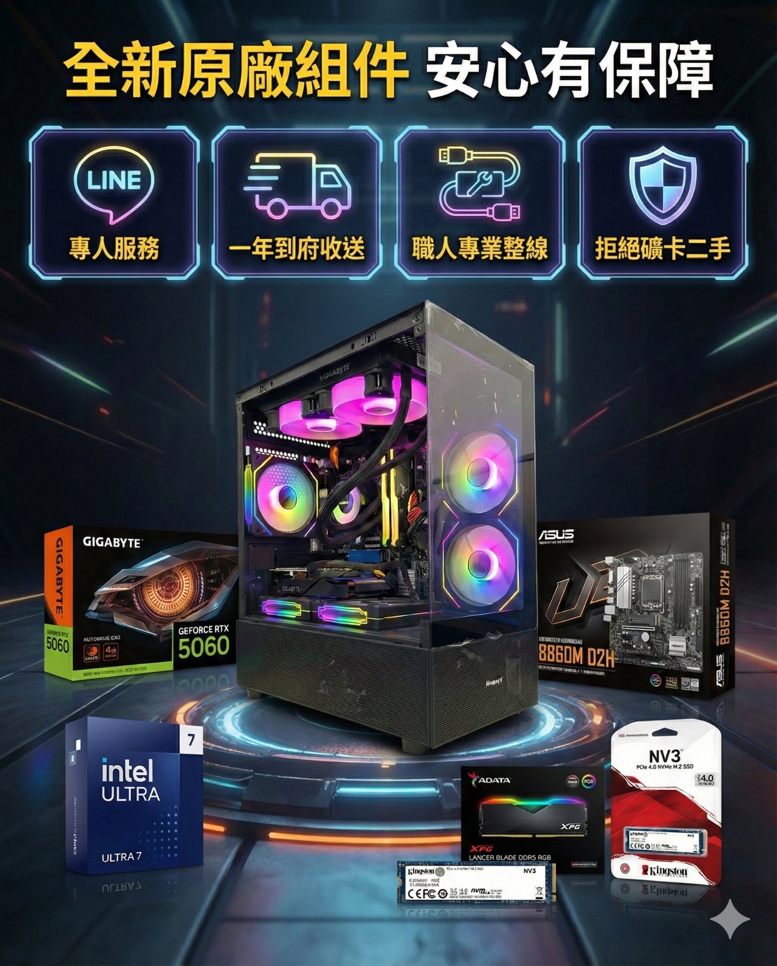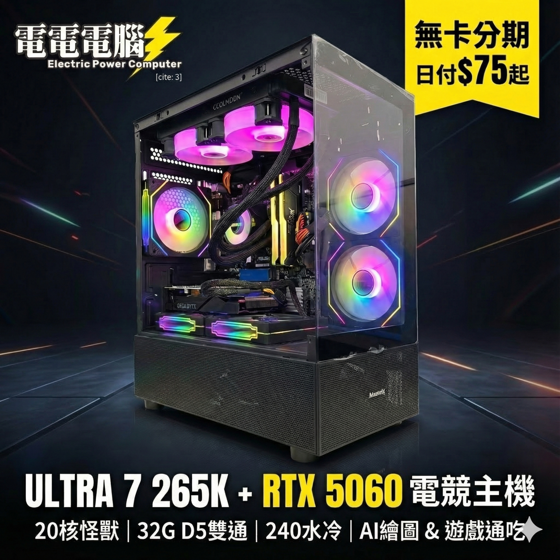圖片 🔥日付$75起!無痛入手「未來規格」光追神機|Ultra 7 + 最新 RTX5060|遊戲AI繪圖通吃|全新原廠零件
