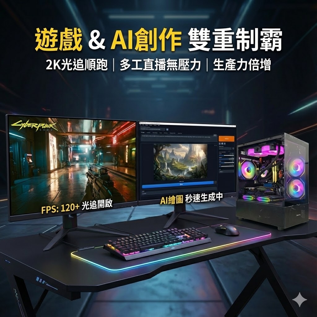 🎮 遊戲黨的極致享受: 體驗最新 RTX 50 系列帶來的震撼!開啟光線追蹤,在 2K 解析度下享受絲滑流暢的畫面。不管是 3A 大作還是競技射擊,你永遠比對手快一步,畫面細節多一倍。
