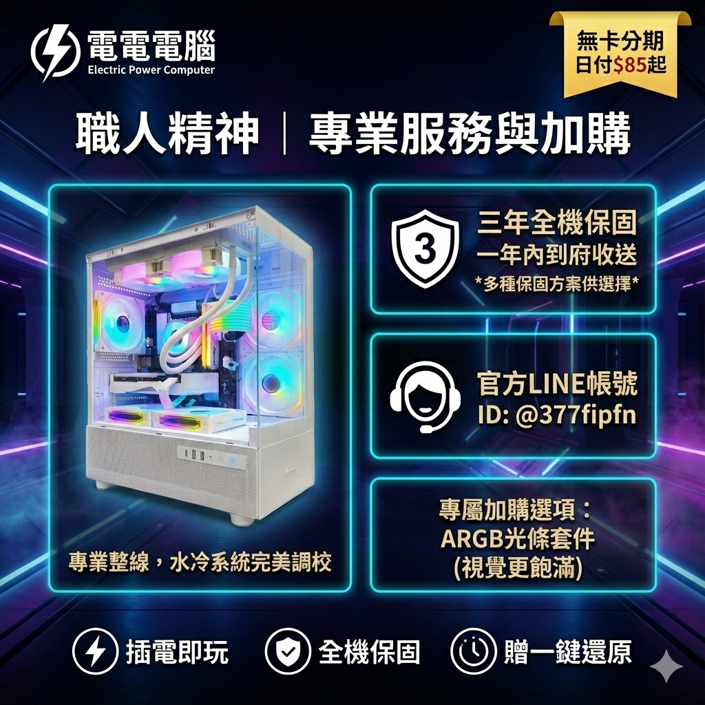 💰 輕鬆入手方案: 支援「無卡分期」,每天只要約 $85 起,立即擁有高效能水冷電競主機!