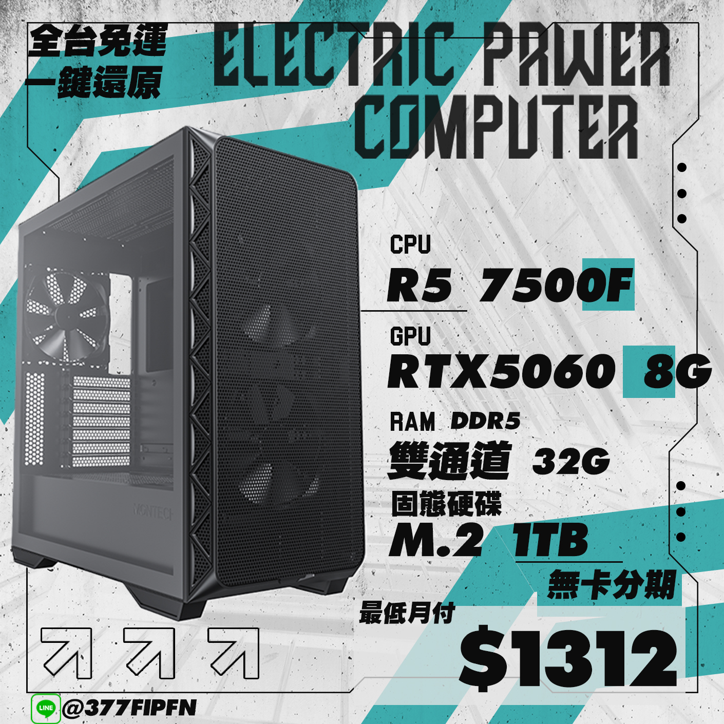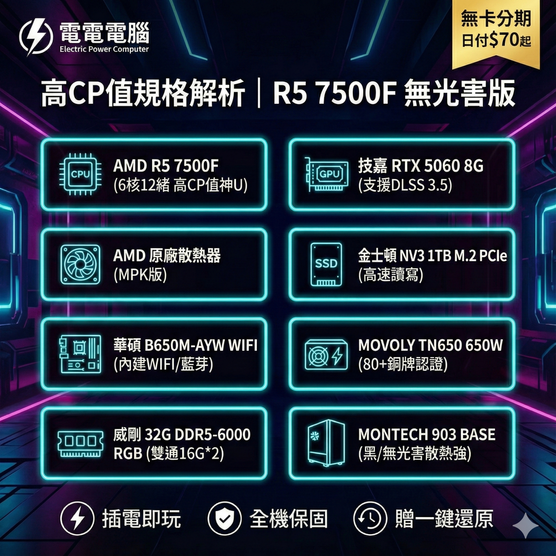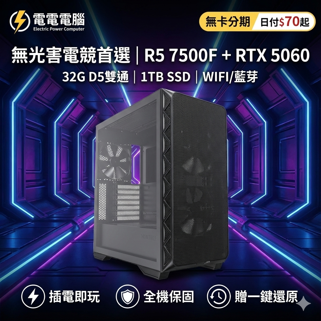 🌈無光害電競首選 R5 7500F + RTX5060 | 32G D5 | 黑悟空60幀 | 無卡分期日付$70起 | 贈一鍵還原