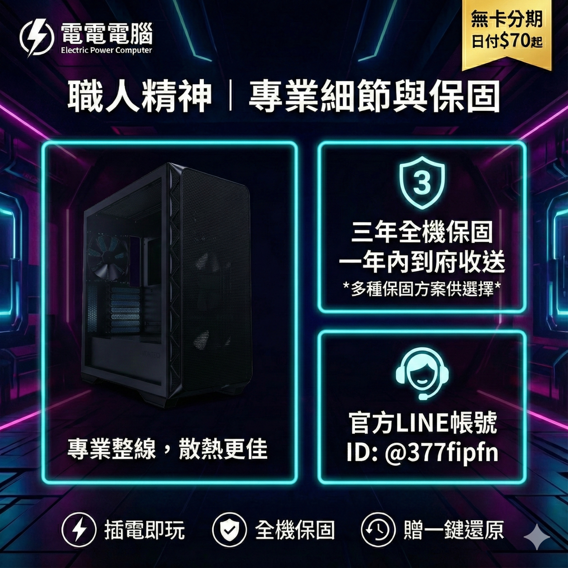 💰 輕鬆入手方案: 支援「無卡分期」,每天只要約 $70 起,立即擁有高效能電競主機!