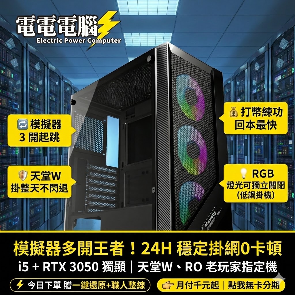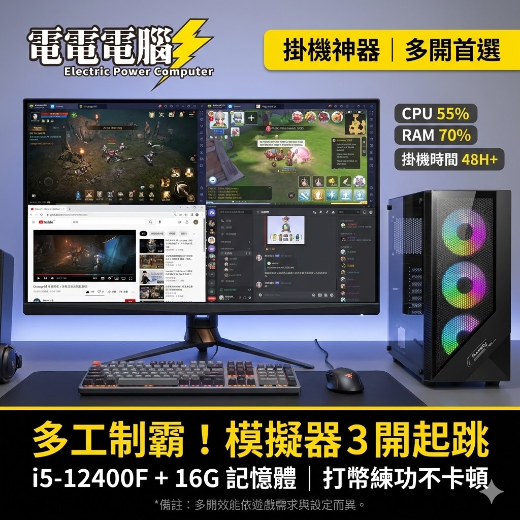 🚀 老玩家懂的「掛機神器」!天堂、RO、模擬器多開,這台最穩! 副標: RGB 燈可關閉 | 24H 掛網不擾眠 | 初輕鬆入手