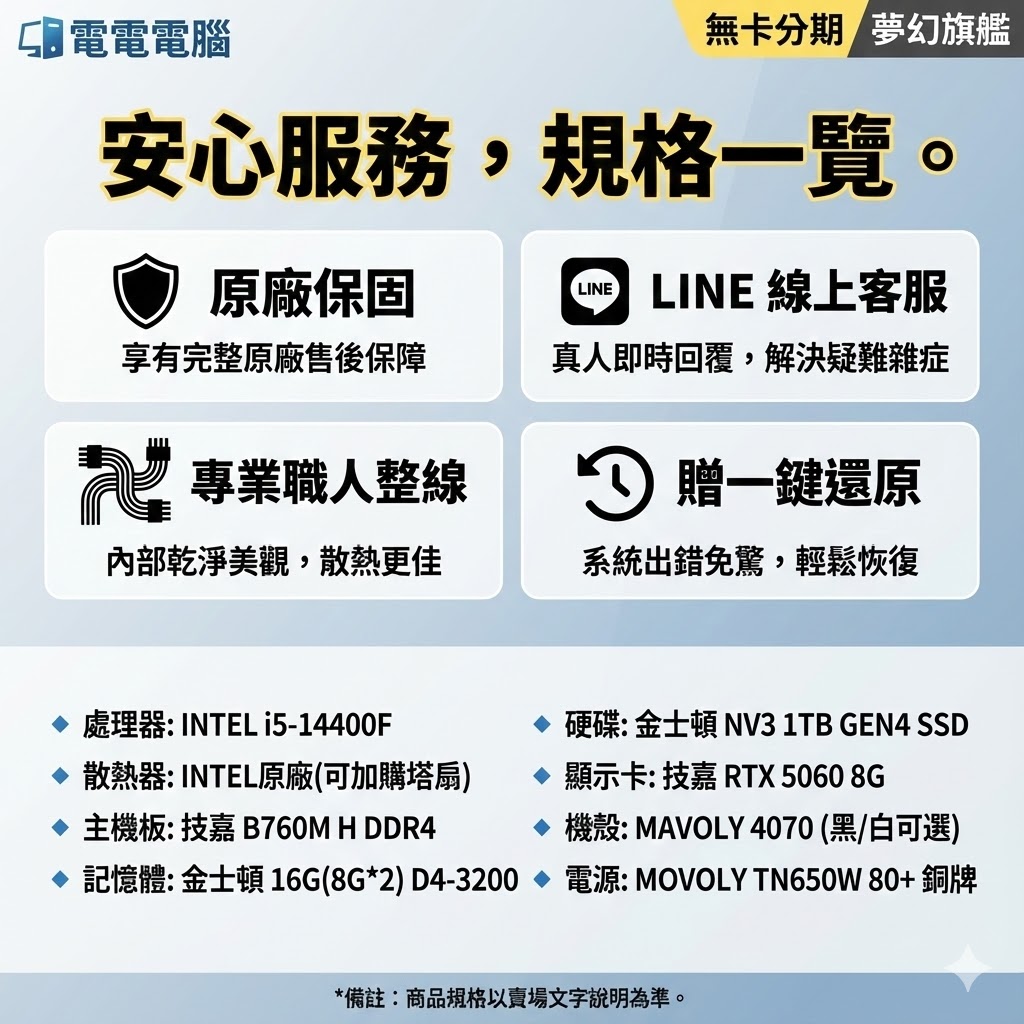 圖片 🌈無光害電競首選 R5 7500F + RTX5060 | 32G D5 | 黑悟空60幀 | 無卡分期日付$70起 | 贈一鍵還原圖片 🔥2026新世代猛獸🔥 RTX5060電競主機 i5十核/16G/1TB SSD | 穩跑黑悟空.APEX.特戰英豪 | 無卡分期日付$50起