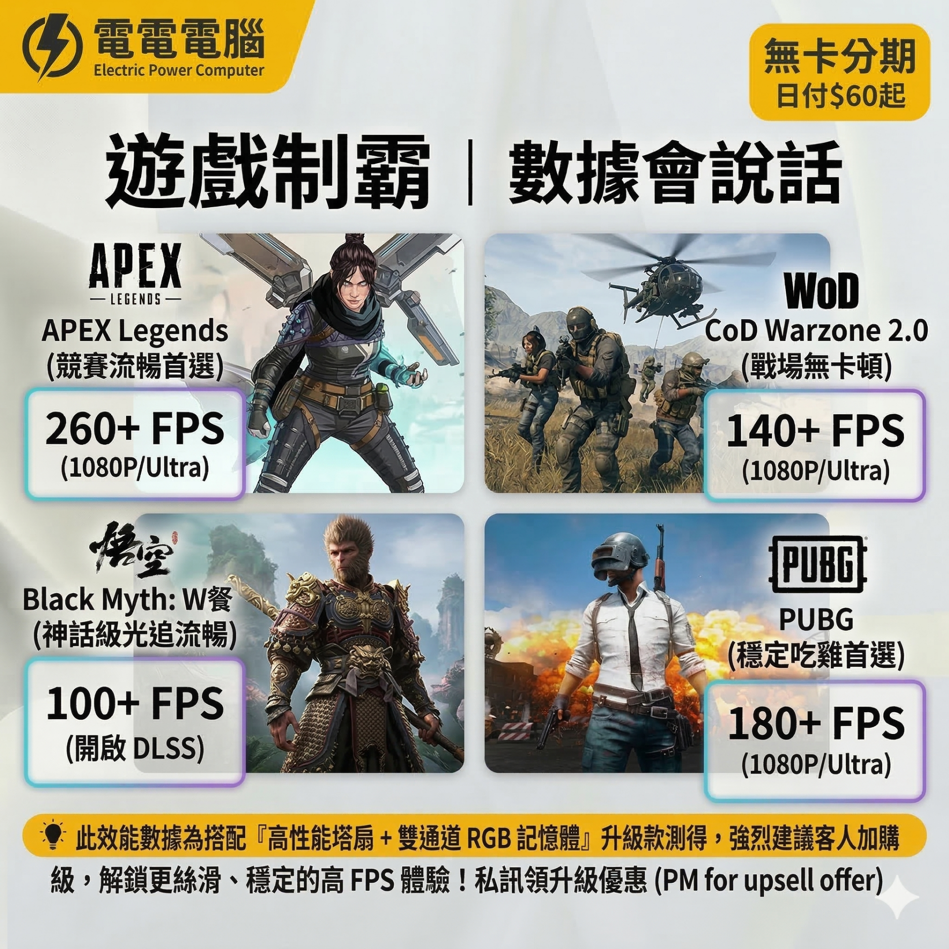 圖片 🌈無光害電競首選 R5 7500F + RTX5060 | 32G D5 | 黑悟空60幀 | 無卡分期日付$70起 | 贈一鍵還原圖片 🔥2026新世代猛獸🔥 RTX5060電競主機 i5十核/16G/1TB SSD | 穩跑黑悟空.APEX.特戰英豪 | 無卡分期日付$50起