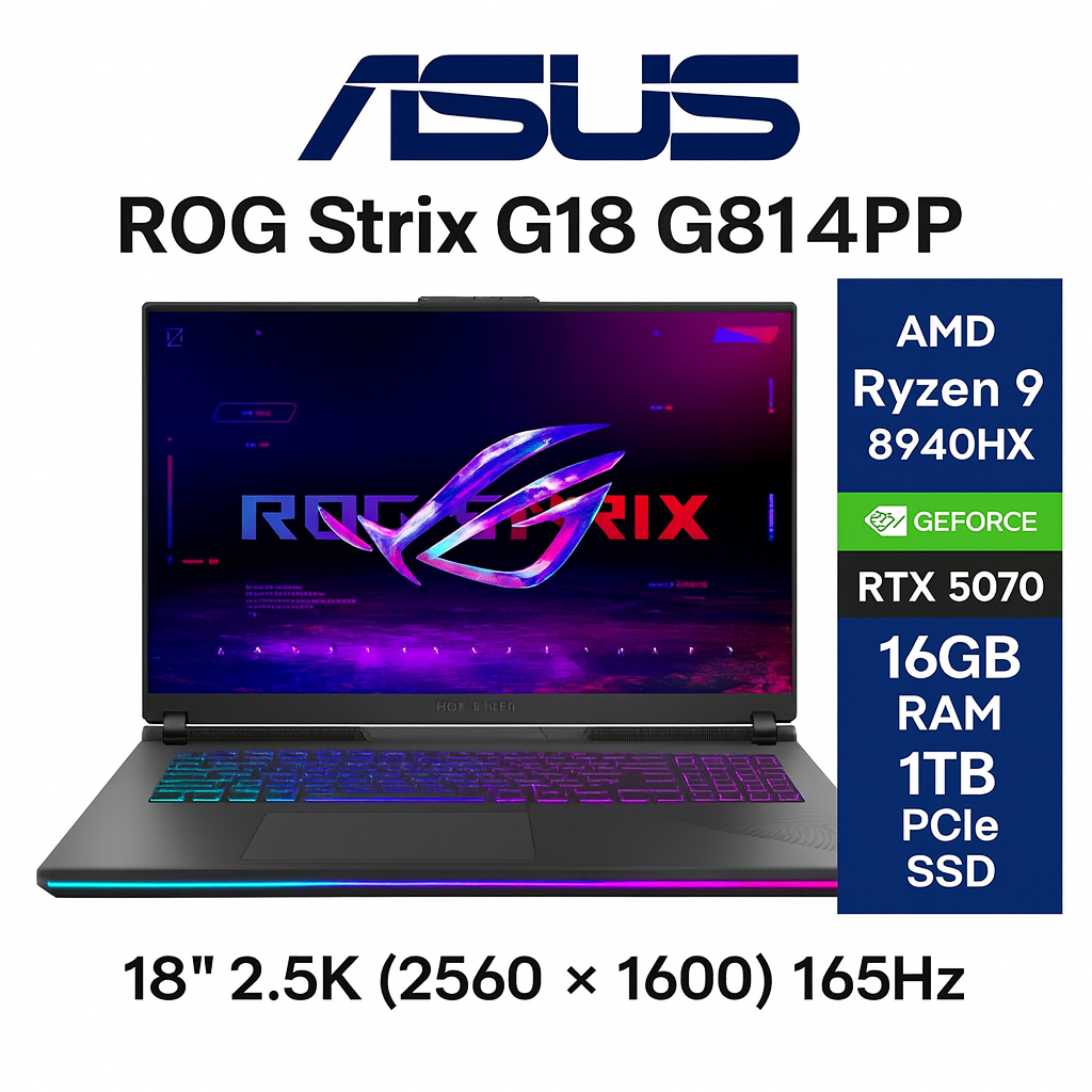 ⭐️ASUS ROG 華碩 ROG Strix G18 G814PP-0034C8940HX-NBL (R9 8940HX/16GB/1TB/RTX 5070/18 2.5K/W11)⭐️
