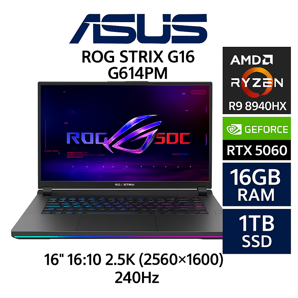 ⭐️ASUS ROG Strix G16 G614PM-0024C8940HX-NBL 幻潮黑 華碩經典潮流電競筆電/R9-8940HX/RTX5060 8G/16GB DDR5/1TB PCIe/16吋 16:10 2.5K 240Hz/W11/含ROG後背包及電競滑鼠⭐️