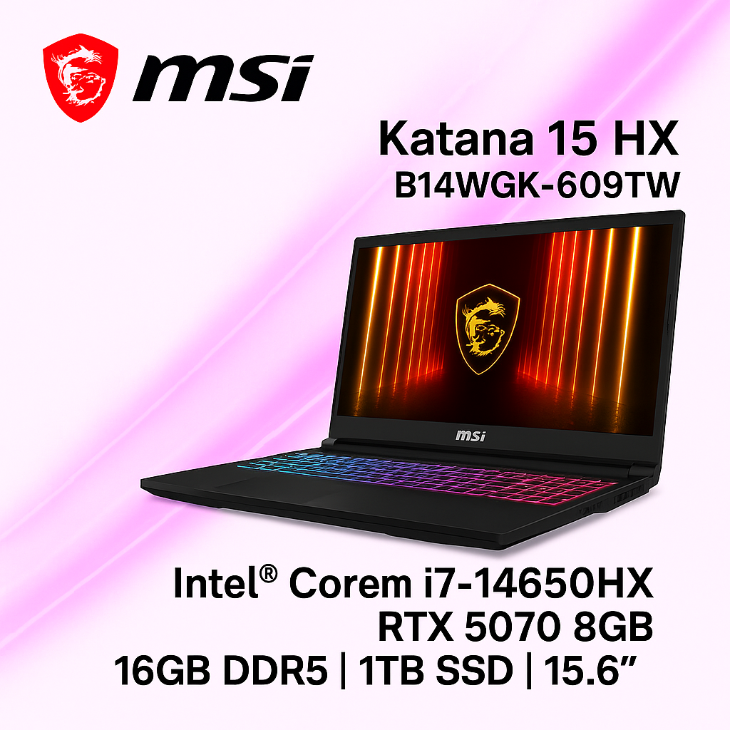⭐️MSI 微星Katana 15 HX 15.6吋 電競筆電黑色(i7-14650HX/16GB/1T/RTX5070-8G/WIN11/B14WGK-609TW)⭐️