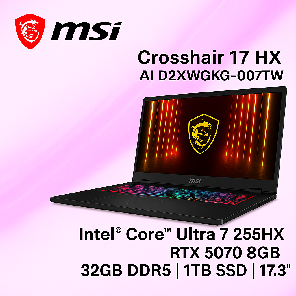 ⭐️MSI Crosshair 17 HX AI D2XWGKG-007TW 微星超滿血高效電競筆電/Ultra 7-255HX/RTX5070 8G/32GB DDR5/1TB PCIe/17吋 QHD+ 240Hz/W11/RGB背光電競鍵盤⭐️